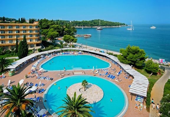 czterogwiazdkowy, należący do sieci Remisens, zadbany, sezonowo odnawiany, 306 pokoi, 3 budynki, 4 piętra, winda w każdym budynku, przestronny hol, całodobowa recepcja, restauracja z tarasem – dania w formie bufetu, obsługa kelnerska, kuchnia międzynarodowa, dostępne foteliki dla dzieci, dania wegetariańskie, inne diety na zamówienie przed przyjazdem; 3 bary: w lobby, przy basenie i przy plaży; 3 sale konferencyjne, sklep z pamiątkami, taras z widokiem na morze, ogród; za opłatą: punkt internetowy i internet bezprzewodowy w holu (ok. 10 EUR/godz.), salon piękności; akceptowane karty kredytowe: Visa, MasterCard, American Express.