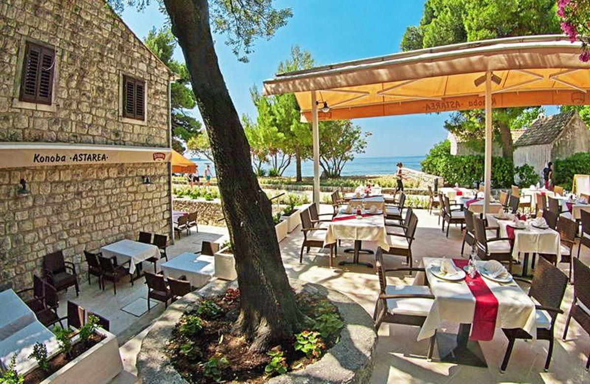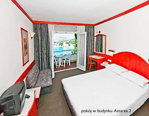 trzygwiazdkowy, zbudowany w 1971 r., częściowo odnowiony w 2012 r., 90 pokoi, 2 budynki: pięciopiętrowy budynek główny Astarea 1- i 2-piętrowy budynek Astarea 2 z pokojami Depandance; w budynku Astarea 1: duży hol, całodobowa recepcja, restauracja główna – dania w formie bufetu, obsługa kelnerska, à la carte; dostępne foteliki i menu dla dzieci, dania wegetariańskie (na zamówienie przed przyjazdem); Piano Bar, bar Konoba Astarea z tarasem słoneczny w pobliżu basenów, kantor, ogród, centrum konferencyjne dla 250 os., fryzjer, sklepik; za opłatą: sejf w recepcji, punkt internetowy; internet bezprzewodowy (ograniczony zasięg).