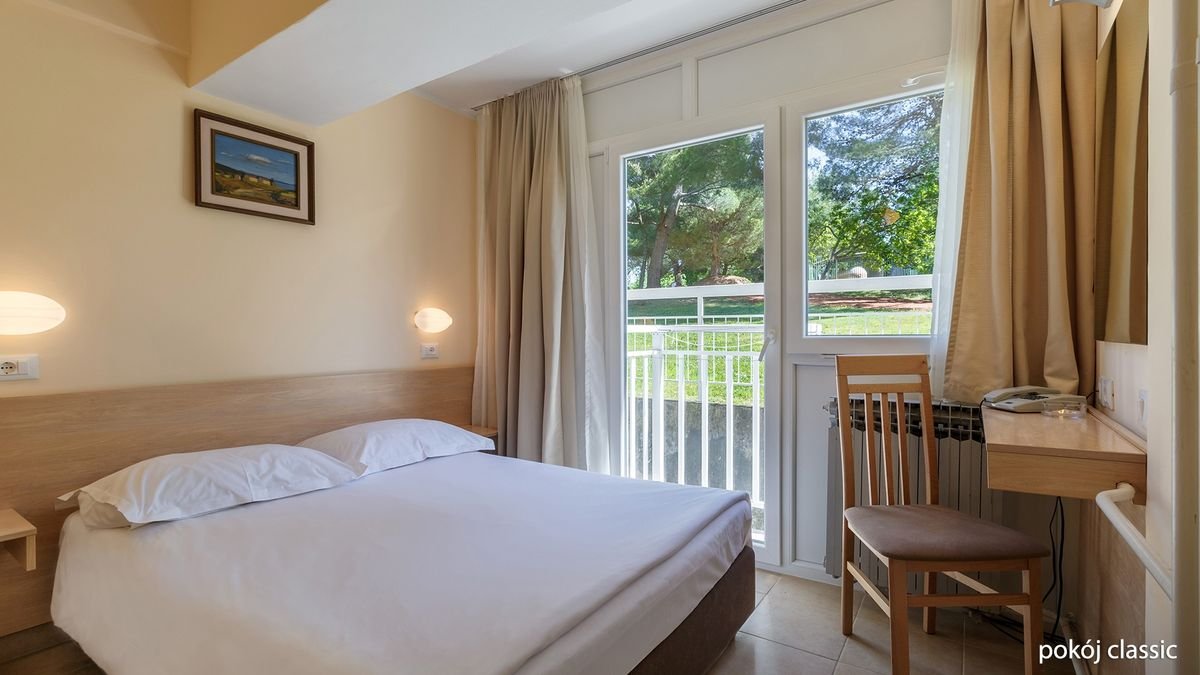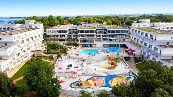 Położony na zielonym półwyspie, kameralny hotel tylko kilka kroków od plaży wyróżnionej Błękitną Flagą. To idealne miejsce zarówno na blogie lenistwo na leżaku, jak i uprawianie sportów wodnych. Świetnie czują się tutaj rodziny – dla dzieciaków w hotelu przygotowano mnóstwo atrakcji, m.in. miniklub i wesołe animacje. O formę zadbać można tutaj grając w tenisa lub minigolfa, a na relaks po dniu pełnym wrażeń najlepiej wybrać się na masaż. Koniecznie zwiedź Poreč – klimatyczne miasto z wieloma zabytkami.