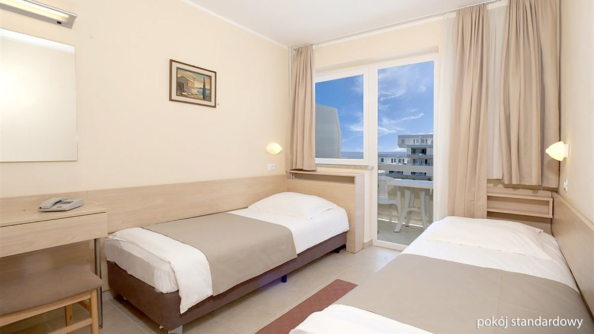 standardowy: 2-os., ok. 15 m², łazienka (wanna lub prysznic, wc; suszarka), telewizor; za opłatą: sejf; część pokoi z balkonami; classic: 2-os. (możliwość 1 dostawki), ok. 15 m²; wyposażenie jak w pokoju standardowym; pokoje: classic i classic z widokiem na morze za dopłatą.
