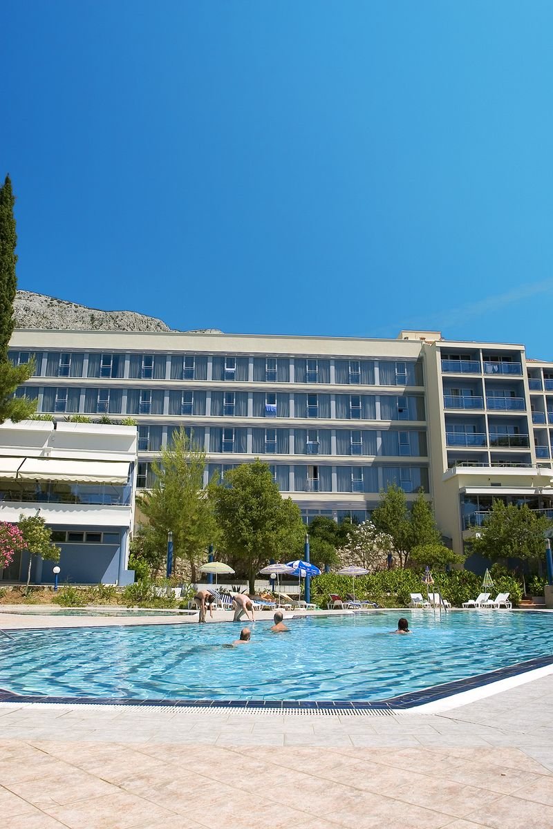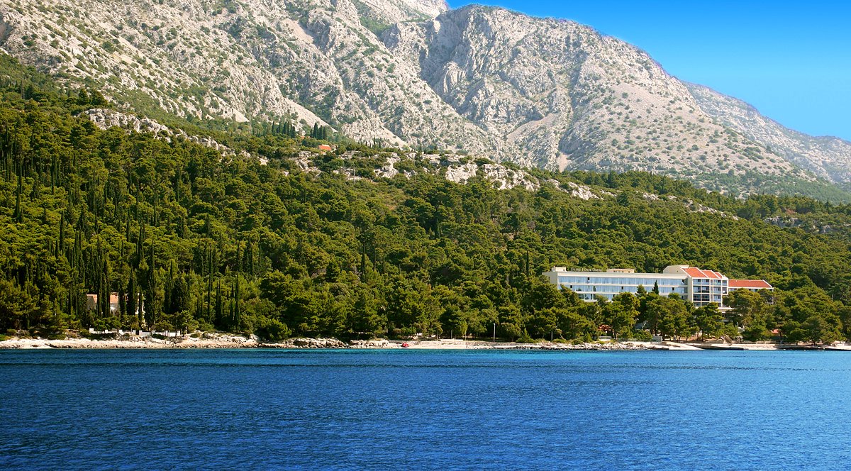 Przepięknie położony przy malowniczej plaży nad krystalicznie czystym morzem, w odległości przyjemnego spaceru nadmorską ścieżką od miasteczka Orebić. Z hotelowego tarasu można podziwiać cudne widoki na wyspę Korčula, góry i morze. Hotel jest otoczony sosnowym lasem, który dochodzi aż do morza, warto wybrać się na pieszą wycieczkę do pobliskiego klasztoru w górach – gwarantowane niezapomniane widoki. Hotel jest dobrze utrzymany, oferuje pobyt w estetycznie urządzonych, zadbanych pokojach, basen i brodzik dla dzieci oraz formułę soft all inclusive.