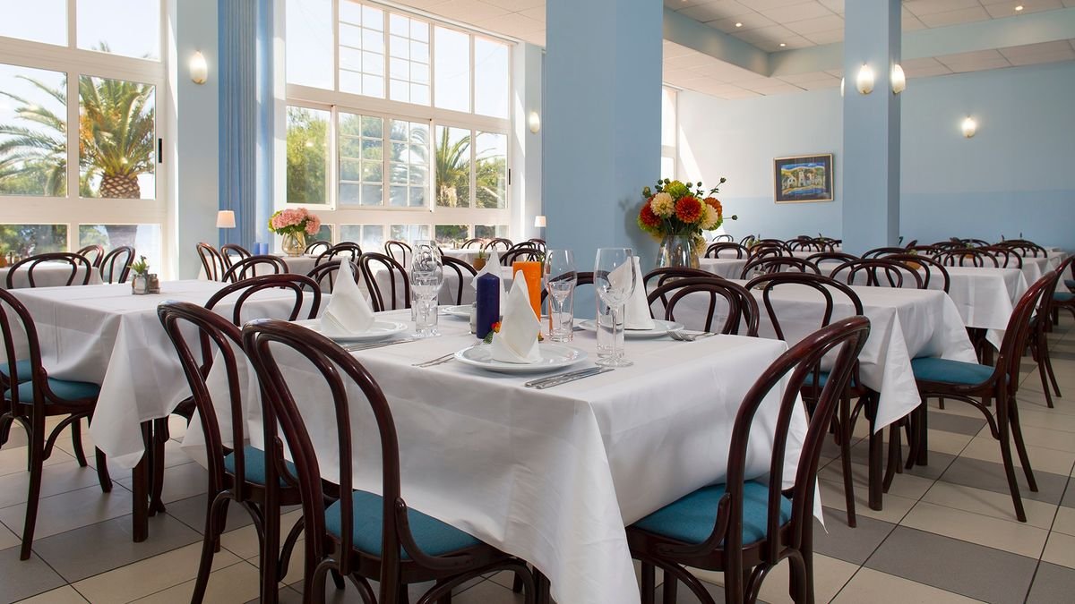 dwugwiazdkowy, skromny, 275 pokoi, 3 budynki, 3 piętra, 2 windy, całodobowa recepcja, restauracja – dania w formie bufetu i à la carte w wyznaczonych godzinach, bar, kawiarnia; taras widokiem na morze, ogród, przechowalnia bagażu, sklep z pamiątkami; za opłatą: parking (5 EUR/dzień), wypożyczalnia samochodów, pralnia; zwierzęta nie są akceptowane; akceptowane karty kredytowe: Visa, American Express, Maestro.