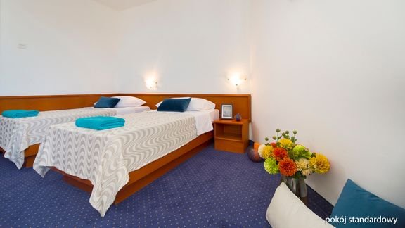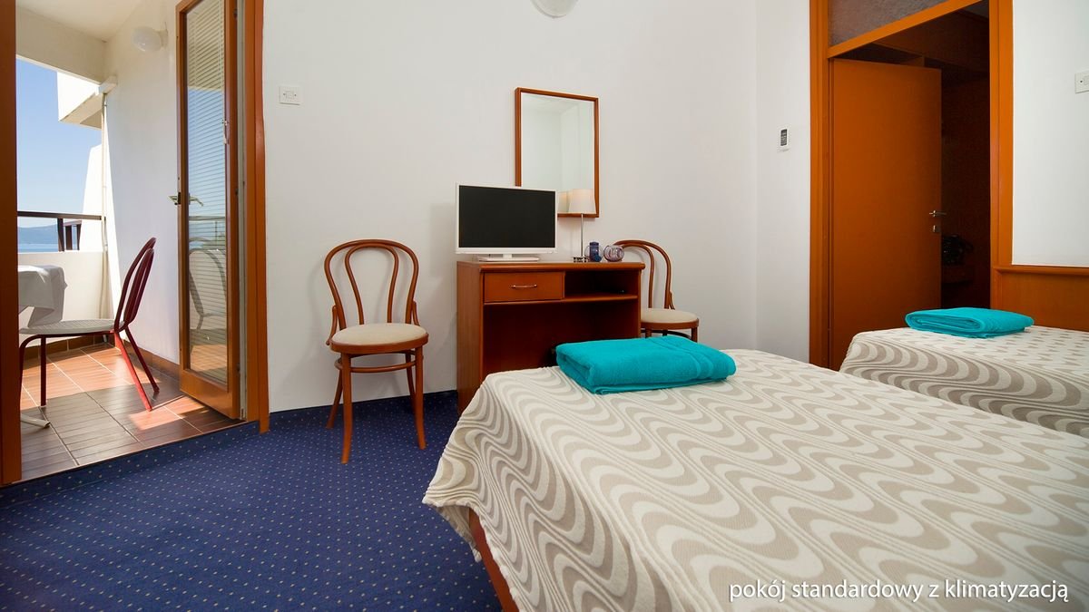 standardowy: 2-os. (możliwość 1 dostawki), ok. 19-21 m², łazienka (prysznic, wc; suszarka), internet bezprzewodowy, telewizja satelitarna, za opłatą: klimatyzacja (na zamówienie przed przyjazdem; 8 EUR/pokój), sejf (3 EUR/dzień), lodówka (5 EUR/dzień); łóżeczko dla dziecka do 2 lat na zamówienie przed przyjazdem (płatne: 5 EUR/noc); balkon; rodzinny: 4-os., ok. 38 m², 2 pokoje połączone drzwiami, łazienka (prysznic, wc; suszarka), internet bezprzewodowy, telewizja satelitarna, za opłatą: klimatyzacja (na zamówienie przed przyjazdem; 8 EUR/pokój), sejf (3 EUR/dzień), lodówka (5 EUR/dzień), łóżeczko dla dziecka do 2 lat na zamówienie przed przyjazdem (5 EUR/noc); balkon.