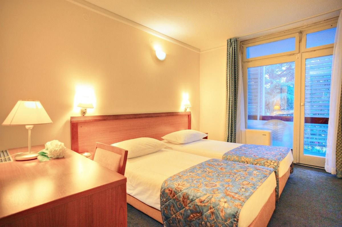czterogwiazdkowy, stylowy, zbudowany w latach 70., regularnie odnawiany, 256 pokoi, 4 budynki, 3 piętra, 2 windy, lobby, całodobowa recepcja, restauracja główna Jure – dania w formie bufetu lub serwowane, kuchnia europejska, dostępne foteliki i menu dla dzieci, dania wegetariańskie (na zamówienie przed przyjazdem), 2 bary: bar w lobby i bar na tarasie; taras z miejscami do siedzenia z widokiem na basen; sklep z pamiątkami, wymiana walut na recepcji; centrum konferencyjne dla 150 osób; za opłatą: internet bezprzewodowy w lobby, opiekunka do dziecka, lekarz na wezwanie; akceptowane karty kredytowe: Visa, MasterCard, American Express, Diners Club; Goście hotelu mogą korzystać z infrastruktury kompleksu Solaris (część udogodnień za opłatą).