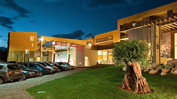 czterogwiazdkowy, regularnie odnawiany, 491 pokoi, całodobowa recepcja, 2 restauracje: główna – dania w formie bufetu, Istarska Taverna – à la carte, 2 bary: w lobby i snack bar przy basenie; sala konferencyjna; za opłatą: internet bezprzewodowy w lobby, punkt internetowy, room-service, parking, pralnia, w okolicy hotelu wypożyczalnia rowerów (oferta zewnętrzna); akceptowane karty kredytowe: Visa, MasterCard.
