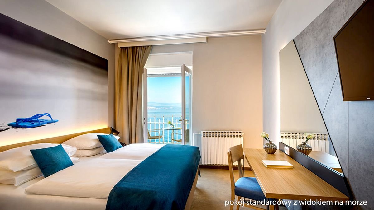 Lubisz wypoczywać tuż przy morzu, opalać się na leżaku i korzystać z uroków okolicy? Ten hotel to dobry wybór! Położony tuż przy Adriatyku i hotelowej plaży z pomostem, w odległości spaceru od centrum Opatiji, do której można dojść słynną promenadą Lungomare, zaprasza na beztroski urlop w urokliwym otoczeniu. W hotelu nowoczesne wnętrza, przestronne pokoje, elegancka restauracja, bistro i bar. Do dyspozycji Gości basen kryty z podgrzewaną, morską wodą. Podziwiaj piękne widoki, odpoczywaj, zwiedzaj i poznaj wszystkie uroki wypoczynku na półwyspie Istria!