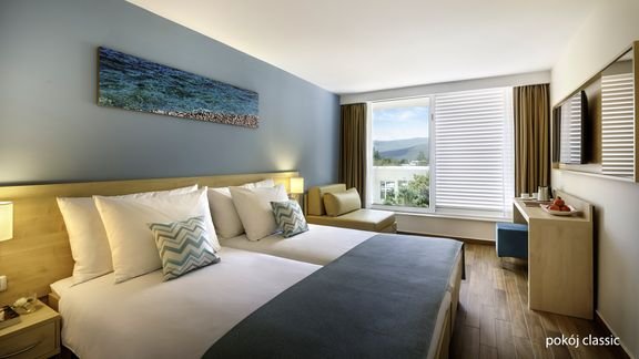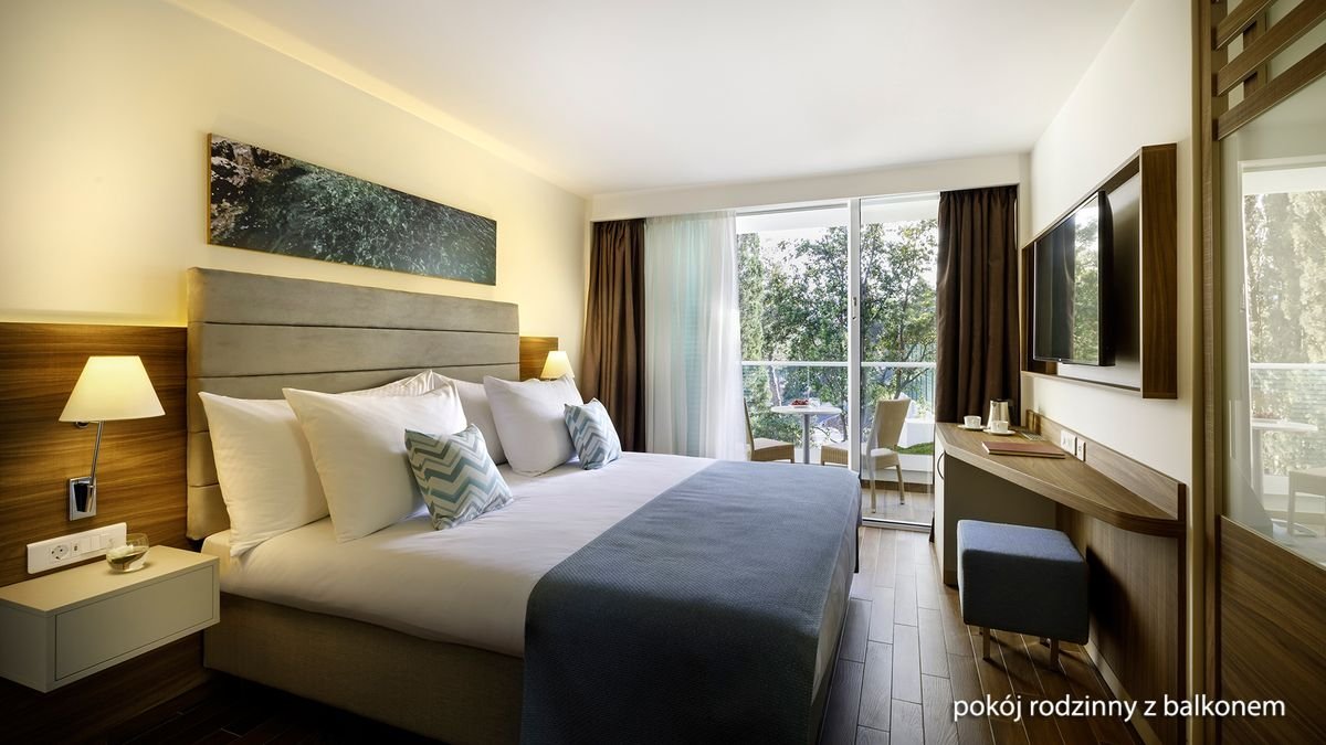 Fantastyczna atmosfera, położenie tuż nad brzegiem morza, przy 3 hotelowych plażach oraz tarasowa zabudowa to gwarancja niezwykłych widoków i wspaniałej zabawy dla całej rodziny. Piękne baseny i hotelowe tarasy to doskonałe miejsca na relaks i wypoczynek, a na aktywnych czekają animacje i liczne udogodnienia sportowo-rekreacyjne w ramach oferty zewnętrznej. W kulinarną podróż po Chorwacji zapraszają eleganckie bary i restauracje, których specjalnością jest wyśmienita kuchnia lokalna i śródziemnomorska. Goście chwalą również nowoczesne i komfortowe pokoje z dostępem do internetu, do wyboru są m.in. praktycznie urządzone pokoje classic oraz przestronne pokoje rodzinne dla 4 osób.