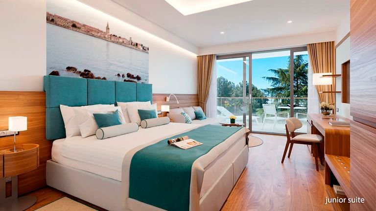 Otoczony sosnowym lasem, luksusowy hotel położony obok malowniczej zatoki, tuż przy prywatnej plaży. Zbudowany zaledwie w 2019 r., oferuje zakwaterowanie w eleganckich pokojach z balkonami. Wspaniałe baseny, mnóstwo atrakcji dla Gości w każdym wieku i piękne widoki na morze sprawiają, że to idealne miejsce na rodzinne wakacje w Chorwacji. Polecamy spacer do historycznego centrum miasta Poreč z urokliwymi uliczkami oraz wizytę w porcie!