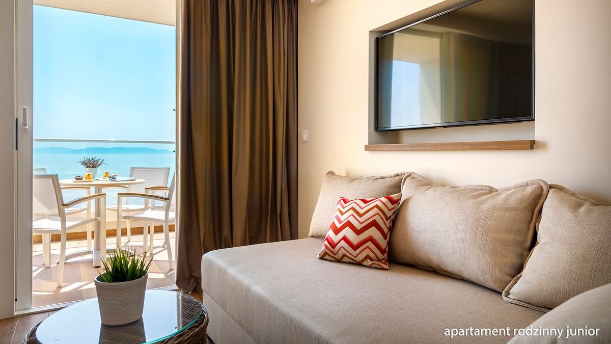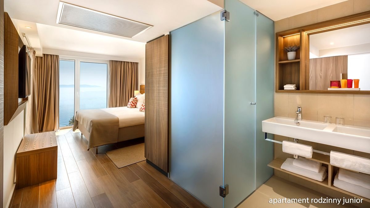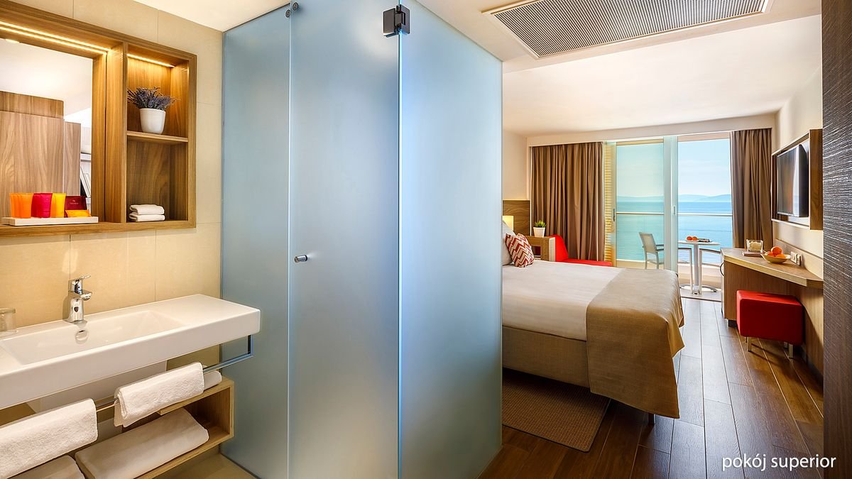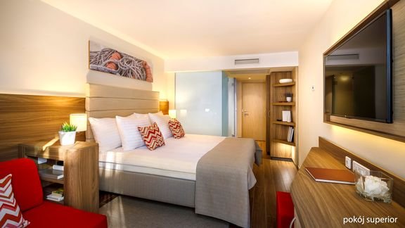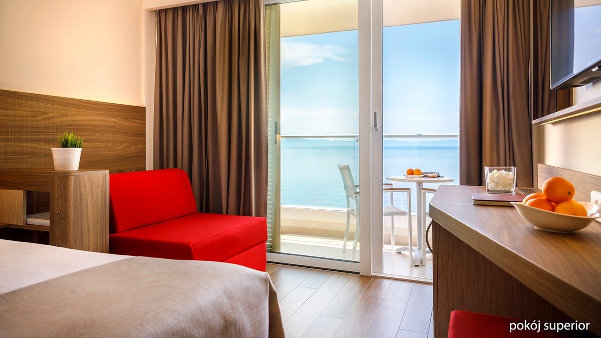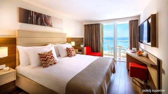 superior: 3-os., ok. 21-30 m², klimatyzowany, łazienka (prysznic, wc), internet bezprzewodowy, telewizja satelitarna, minibar (płatny); bezpłatne łóżeczko dla dziecka do 2 lat na zamówienie przed przyjazdem; balkon (stolik i krzesełka), widok na morze; apartament rodzinny junior: 4-os., ok. 36-39 m², łazienka (wanna lub prysznic, wc), wyposażenie jak w pokoju superior, minibar (płatny); balkon (stolik i krzesełka), widok na morze; apartament rodzinny junior za dopłatą.