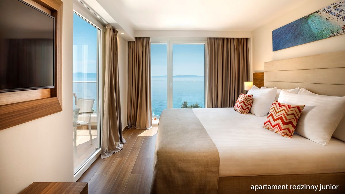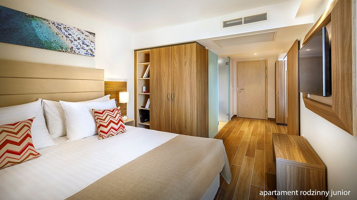 Znakomita propozycja na aktywne, rodzinne wakacje! Bliskość hotelowej plaży ucieszy miłośników wodnych szaleństw, a świetna atmosfera zapewni beztroski, wakacyjny relaks. Dla rodzin z dziećmi przygotowano wiele udogodnień, jak basen, zjeżdżalnie i wodny plac zabaw, a to tylko część atrakcji jakie czekają na miejscu. Goście mają do dyspozycji elegancką restaurację, a także bar przy basenie. Wypoczynek po aktywnym dniu zapewnią nowoczesne i dobrze wyposażone pokoje, w tym przestronne apartamenty rodzinne dla 4 osób.