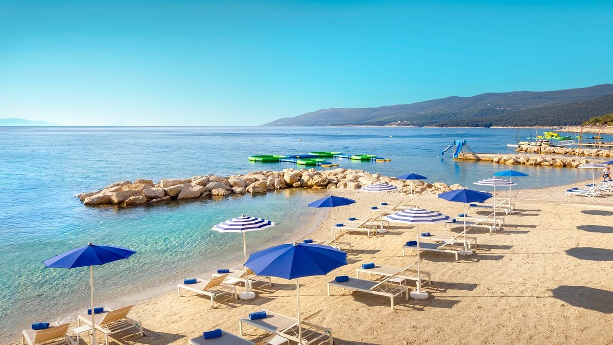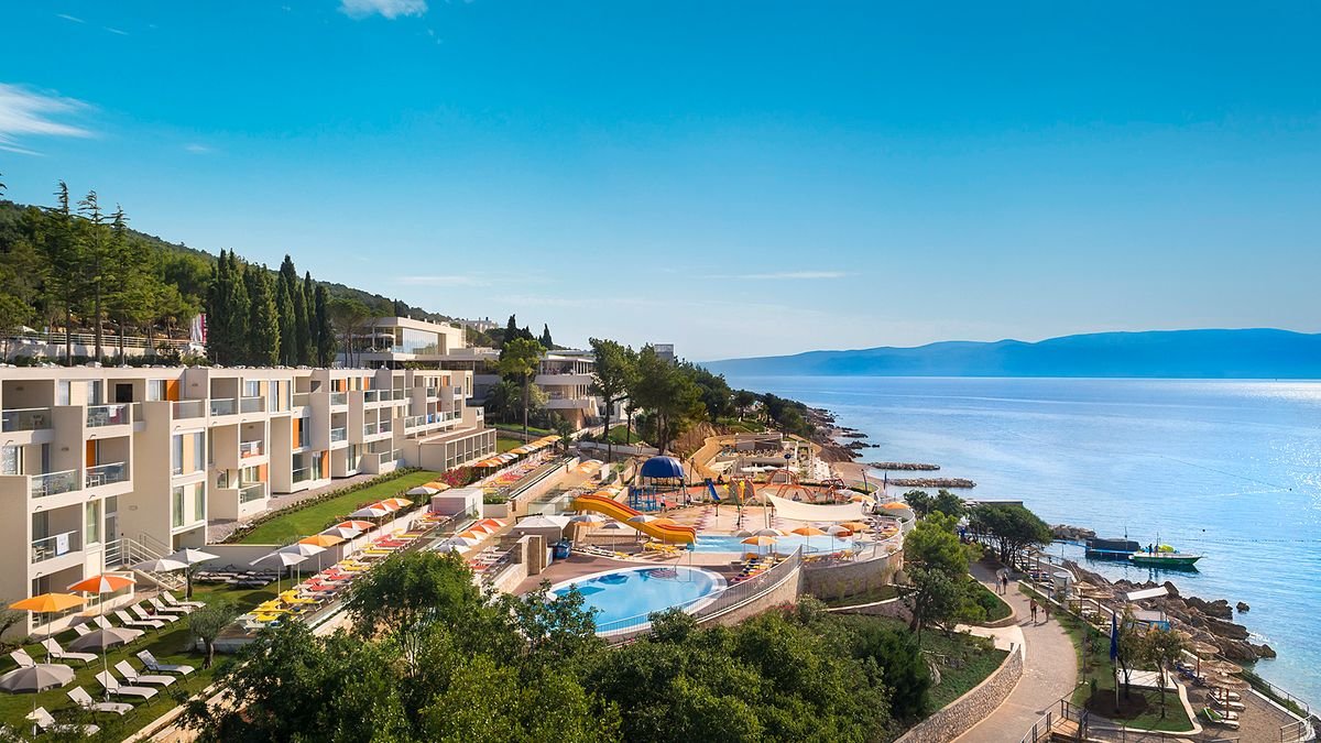 na półwyspie Istria, ok. 1 km od centrum miejscowości RABAC, przy hotelu sklepy i restauracje; ok. 52 km od lotniska w Puli.