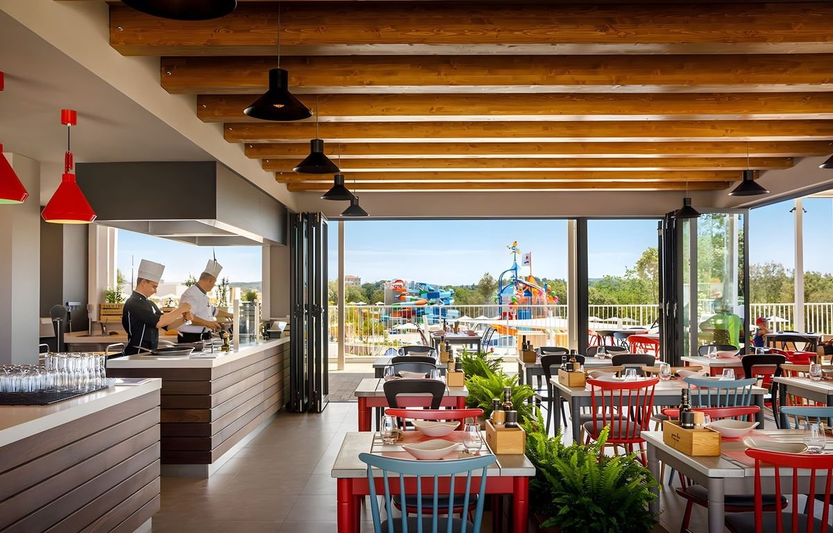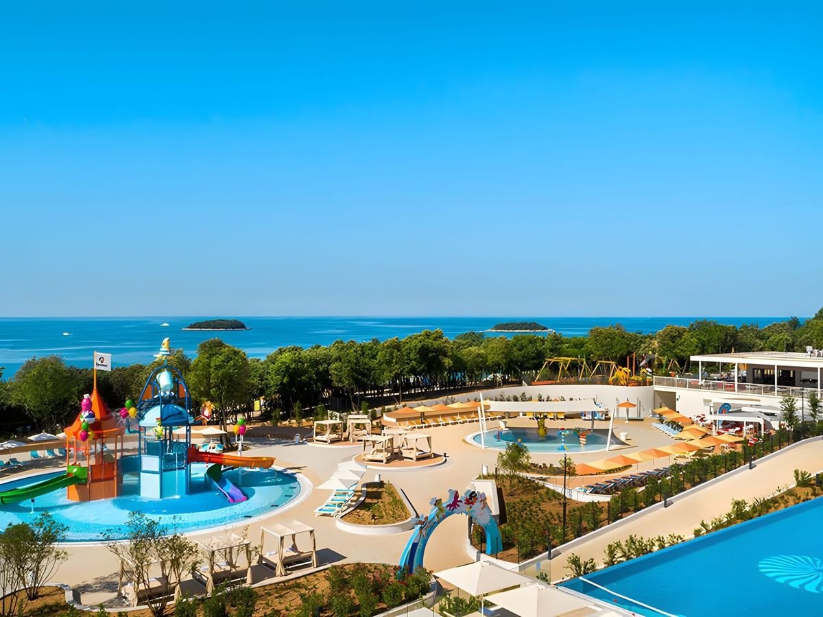 To wyjątkowe miejsce łączy wszystko, co najlepsze – naturę, wygodę i mnóstwo atrakcji dla każdego, a do tego jest położone na malowniczym Półwyspie Istria i zaledwie kilka kroków od 4 hotelowych plaż z bezpłatnym serwisem. Komfortowe domki z wyposażonym aneksem kuchennym i przestronnym tarasem zapewniają prywatność i swobodę wypoczynku – tutaj poczujesz się jak w domu i zaplanujesz czas dokładnie tak, jak lubisz. Na miłośników wodnych przygód czeka park wodny z m.in. 6 zjeżdżalniami i wodnym placem zabaw, a ci, którzy wolą spokojnie odpocząć, mogą zrelaksować się na leżaku, wziąć udział w wyciszających zajęciach jogi lub wybrać się na odprężający masaż. 3 minikluby, rozrywkowe animacje i ciekawa oferta sportowo-rekreacyjna gwarantują doskonałą zabawę od rana do wieczora i tworzą przepis na wakacje pełne niezapomnianych wrażeń.