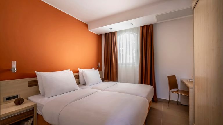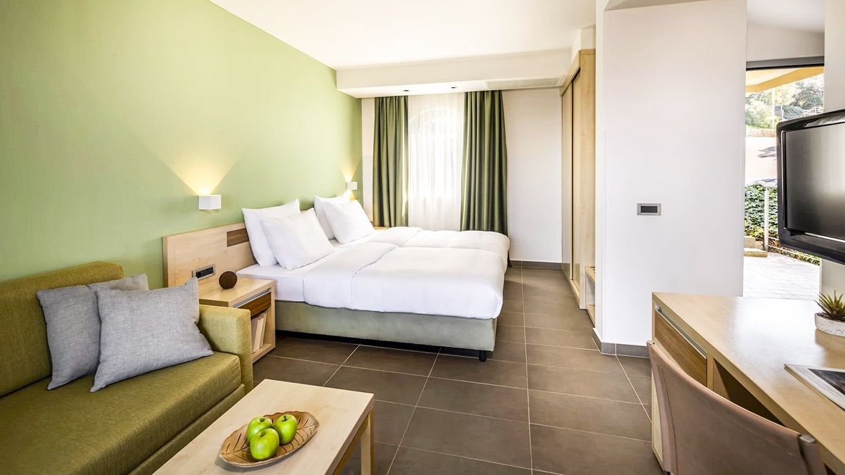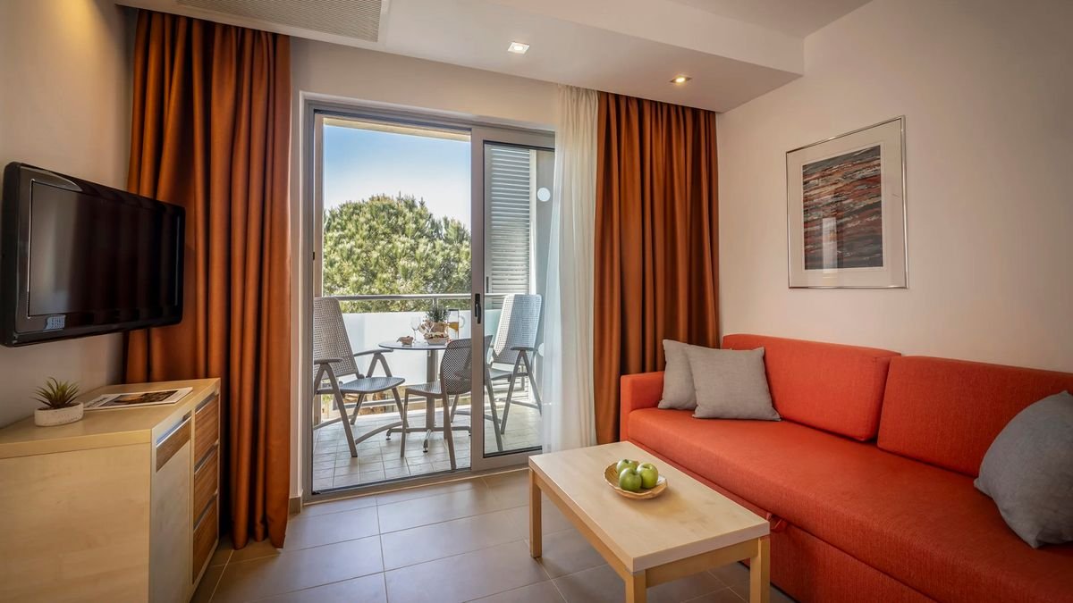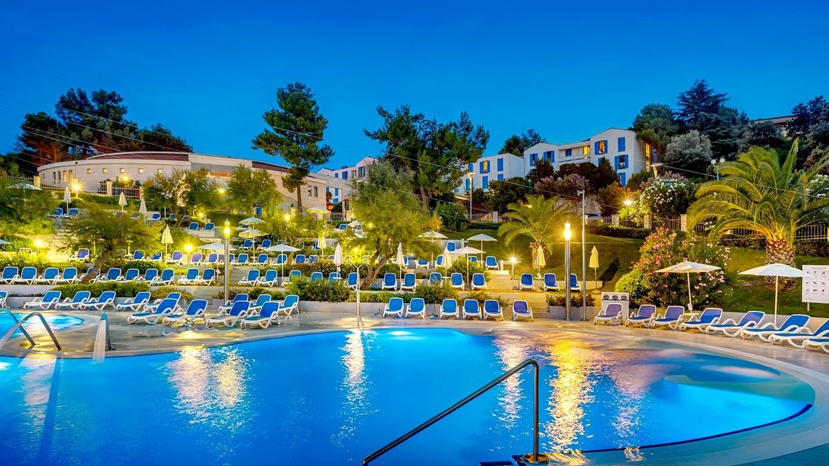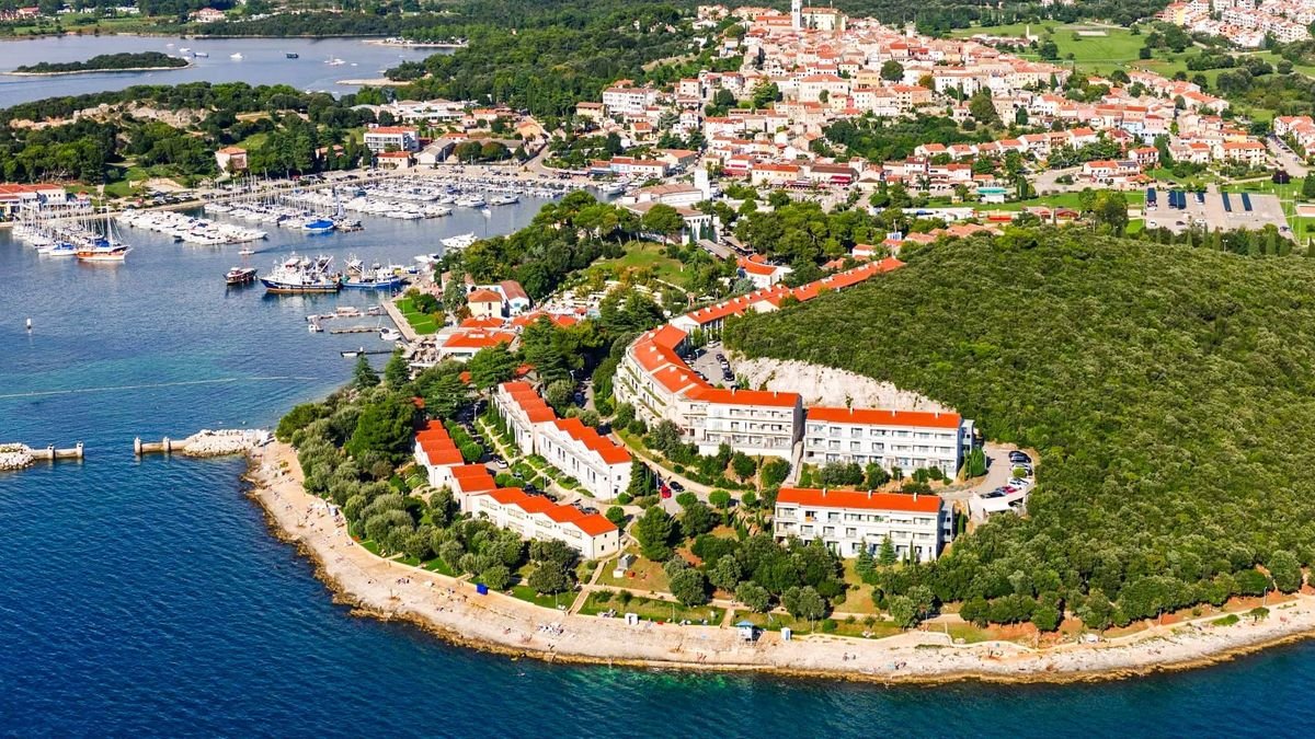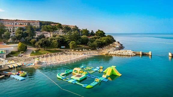 Tarasowo położony na niewielkim wzniesieniu, tuż przy plaży wyróżnionej Błękitną Flagą, z pięknymi widokami na archipelag Vrsar – to doskonałe miejsce, by poczuć wakacyjny klimat i podziwiać niezwykłą urodę chorwackiego wybrzeża. Na miejscu na Gości czekają zwrócone w stronę morza baseny, 2 restauracje, 3 bary oraz miła, pomocna obsługa. W odległości spaceru jest miasto Vrsar ze sklepikami i tawernami – przyjemna przechadzka nadmorską promenadą będzie dobrą okazją do relaksu i pozwoli w pełni docenić uroki okolicy. Warto również wypożyczyć rower i wybrać się na odprężającą przejażdżkę.
