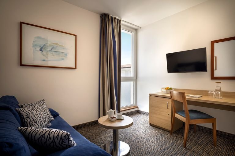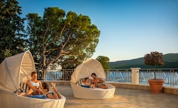 Pięknie położony, na niewielkim półwyspie w otoczeniu śródziemnomorskiej roślinności, zachwyca romantyczną atmosferą, widokiem na morze i doskonałą jakością usług. Polecany na wypoczynek we dwoje, oferuje wiele wakacyjnych udogodnień: duży basen, ciekawe animacje i bogatą ofertę sportowo-rekreacyjną. Do dyspozycji Gości jest także centrum wellness z krytym basenem i saunami, dzięki czemu można tutaj nie tylko aktywnie spędzić czas, ale również zrelaksować się i zadbać o formę podczas wakacji. Zaledwie kilka kroków jest do hotelowej plaży, a nieco dalej do centrum urokliwego Rabac z licznymi sklepami, barami i restauracjami.