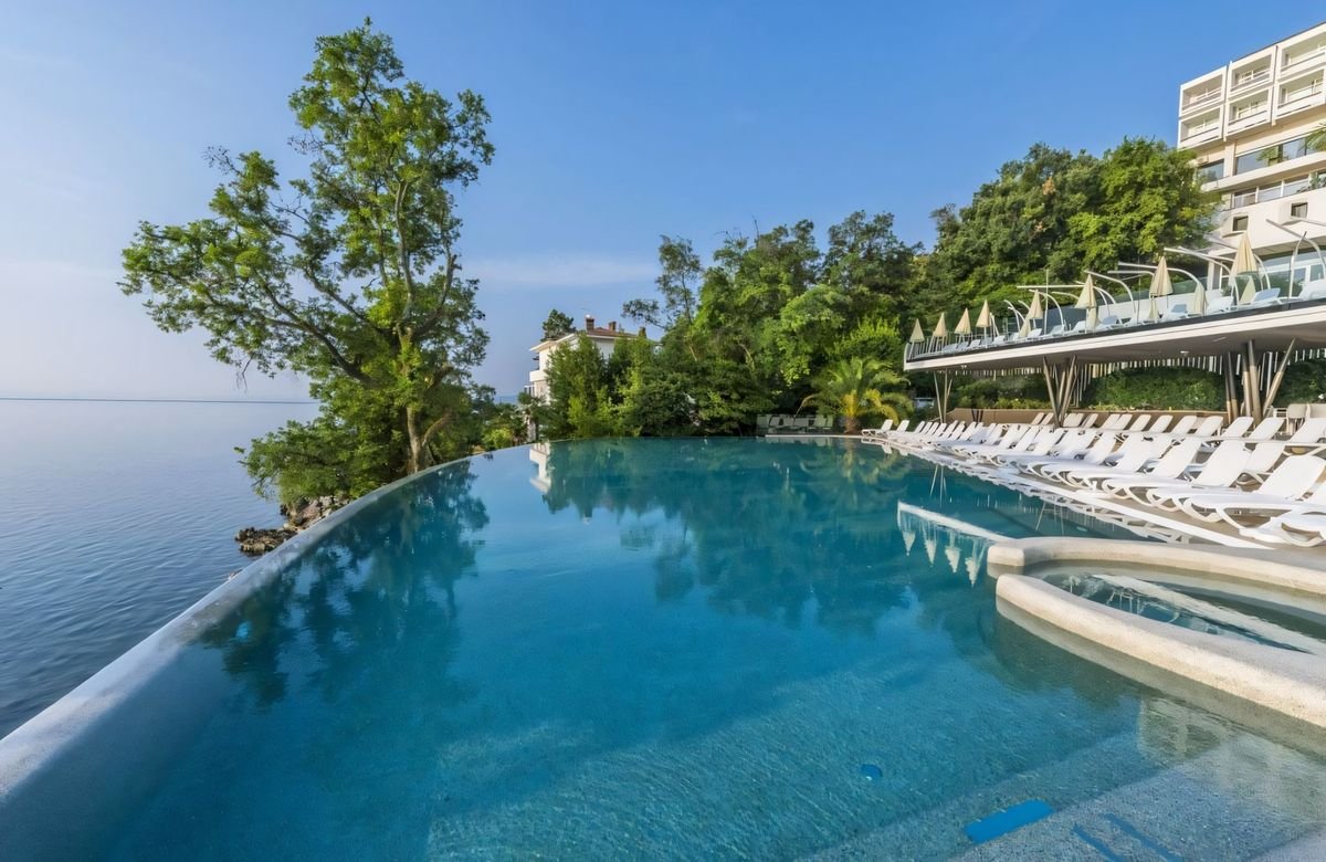 Kaskadowo położone budynki zatopione w śródziemnomorskiej zieleni i wspaniały basen infinity z fenomenalnym widokiem na zatokę Kvarner to idealna sceneria na romantyczne chwile z ulubionym człowiekiem i wspólne instagramowe zdjęcia! Genialne spa oferuje nie tylko basen, ale i saunę z widokiem na bezkres morza – miejsce wręcz stworzone do stuprocentowego relaksu! Wyśmienita jest również tutejsza kuchnia, bogata w owoce morza, świeże owoce i warzywa.