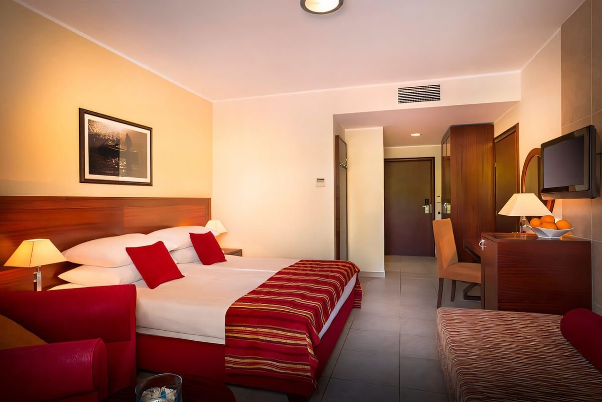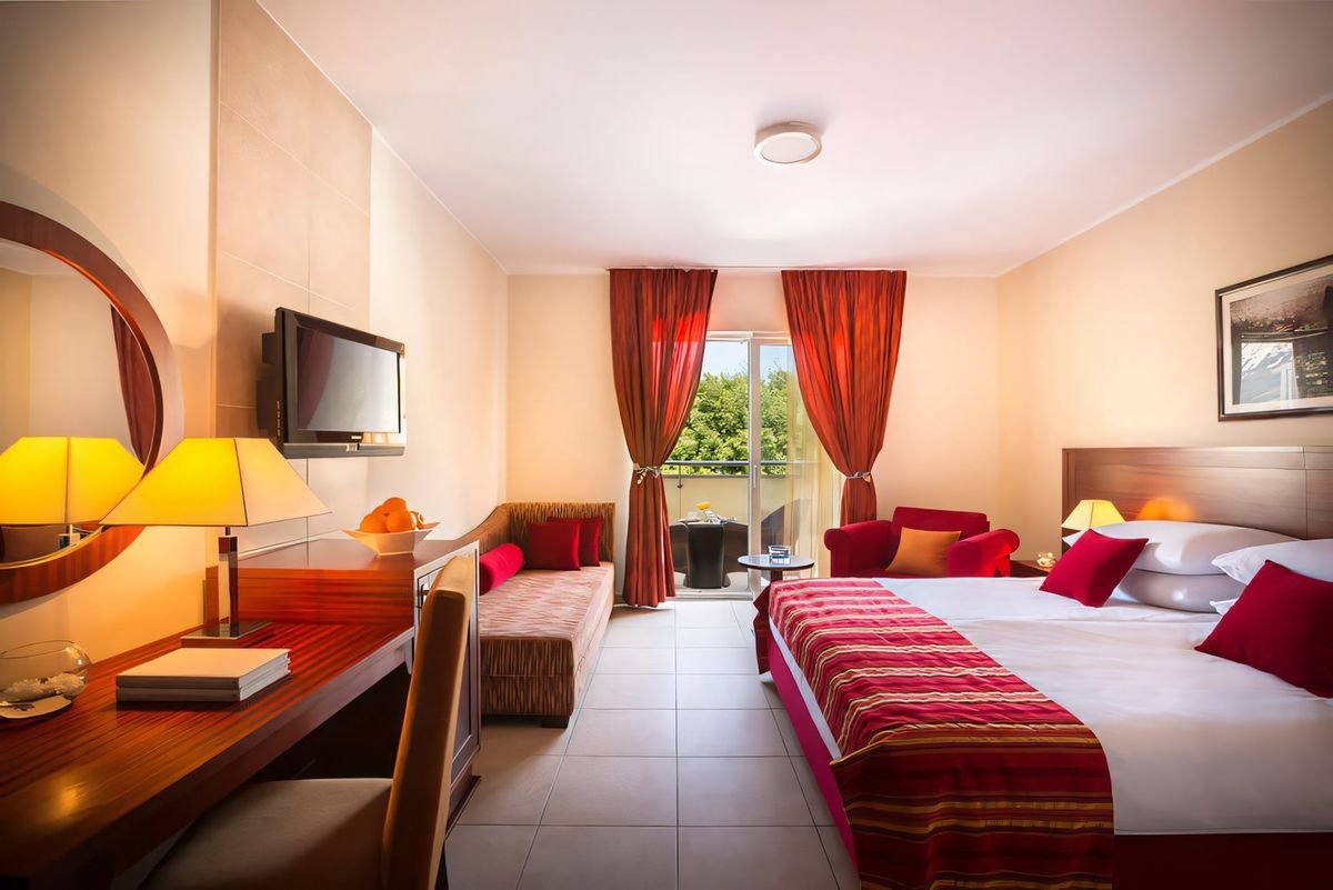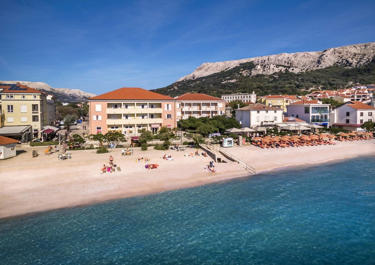 To kameralne miejsce na wyspie Krk to idealna propozycja na spokojne wakacje w chorwackim stylu. Położony tuż przy urokliwej plaży wyróżnionej Certyfikatem Błękitna Flaga, gdzie odpoczniesz w słoneczne dni, to doskonały wybór na wyjazd z rodziną. Czekają na Ciebie 3 baseny w siostrzanym hotelu, w tym z wodnym placem zabaw dla dzieci oraz pyszne śniadania, od których zaczniesz każdy dzień. Komfortowe i przestronne pokoje z balkonami zapewnią Ci wszystko, czego potrzeba do wypoczynku, a miła i pomocna obsługa zadba, by Twój pobyt był niezapomnianym doświadczeniem!