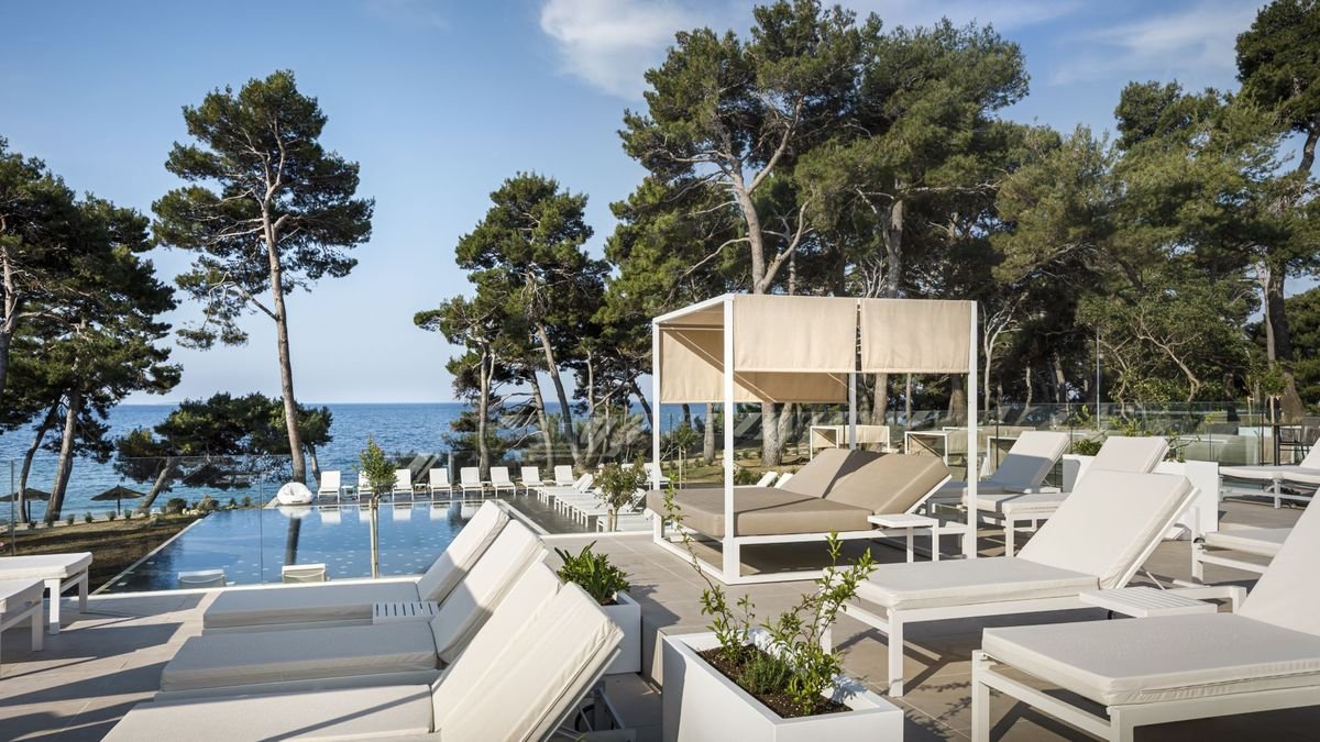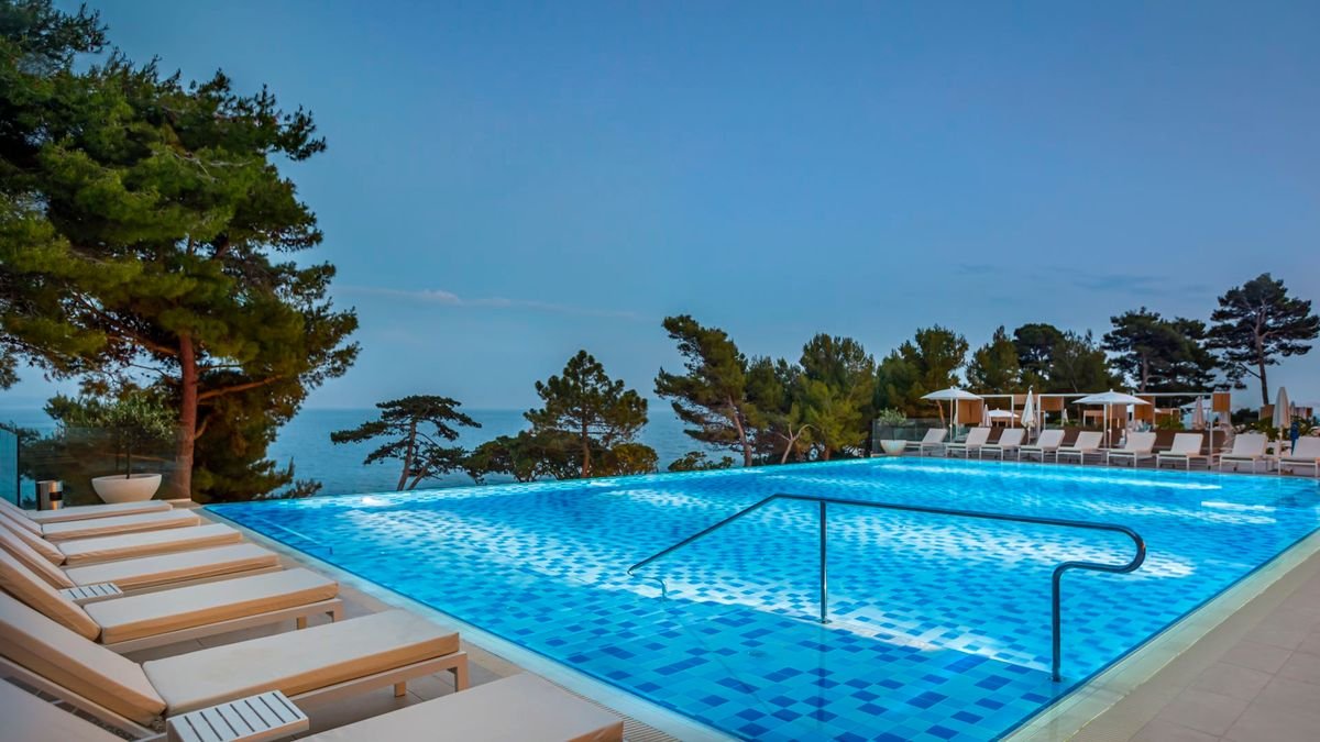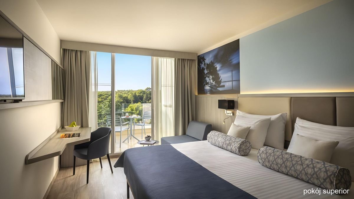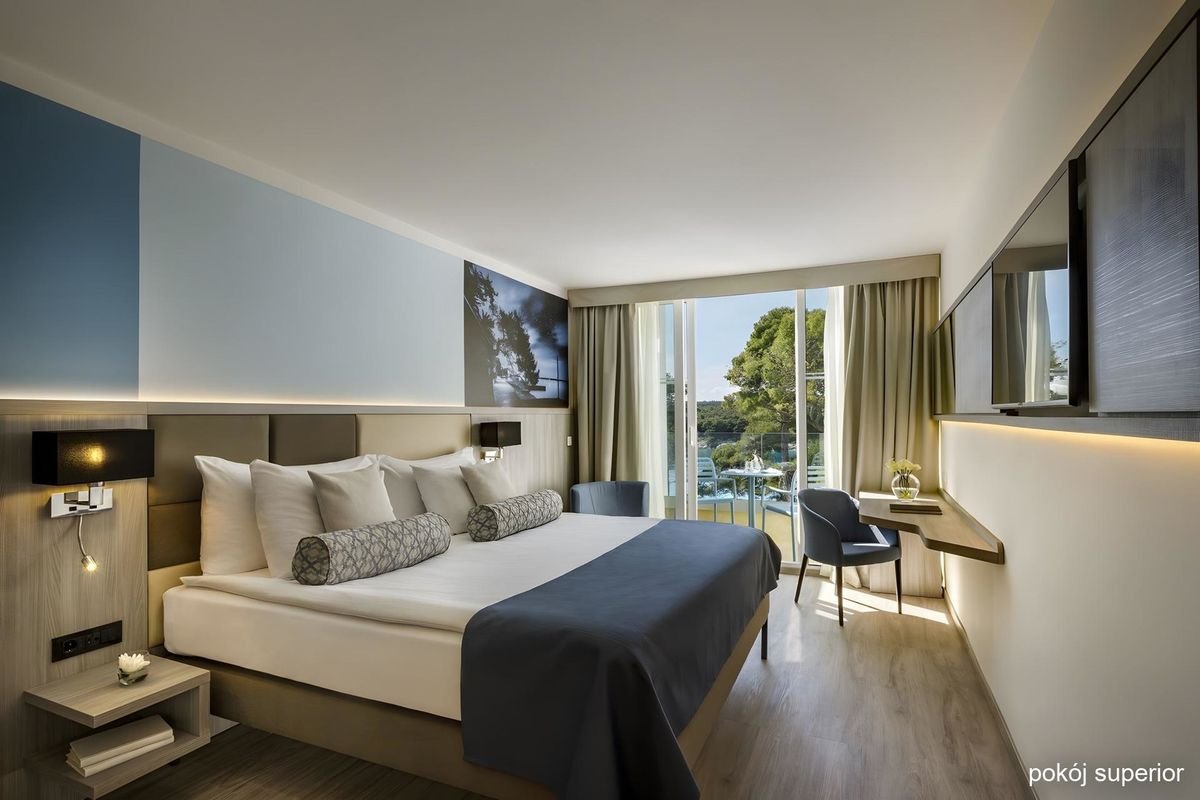 Położony na wyspie Rab, nazywanej wyspą szczęścia i uznawaną za jedną z najpiękniejszych na Adriatyku, oferuje wspaniałą i spokojną atmosferę, bajeczne widoki i nowoczesne udogodnienia, w tym zakwaterowanie w komfortowych pokojach wyposażonych we wszelkie wygody i smaczne restauracje, m.in. z kuchnią chorwacką. Przy hotelu jest piękna, długa plaża z małą zatoczką otoczoną sosnami, która doskonale sprawdzi się na relaks. Jeśli wolisz, możesz spędzić odprężające chwile przy jednym z basenów infinity lub w spa.