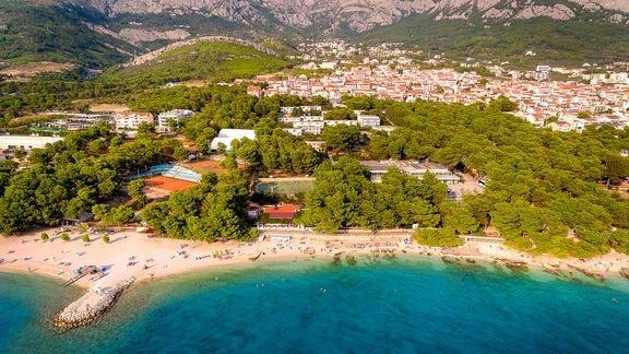 Jeżeli szukasz zakwaterowania w zielonej okolicy, przy najpiękniejszych plażach Makarskiej, to ten resort jest dla Ciebie! Otoczony sosnami i drzewami oliwnymi, położony na skraju turystycznego kurortu, ok. 2 km od tętniącego życiem centrum. Tutaj można zrelaksować się nie tylko na leżaku, ale również aktywnie – podczas gry w tenisa, minigolfa czy organizowanego na terenie kompleksu aerobiku. Odpoczywaj, podziwiaj widok na morze i delektuj się różnorodnymi daniami, które oferuje hotelowa restauracja!