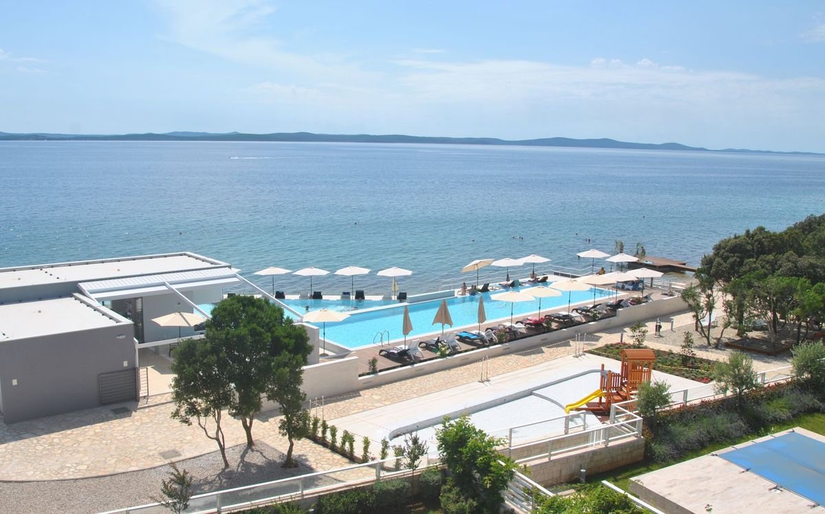 Położony w pierszej linii brzegowej, tuż przy żwirowo-kamienistej plaży, w otoczeniu lasu, w strefie Petrčane – jednym z najbardziej popularnych ośrodków turystycznych w Dalmacji. Przyjemny kompleks oferuje zakwaterowanie w przestronnych, funkcjonalnie urządzonych apartamentach z tarasami. Do wyłącznej dyspozycji mieszkańców są baseny, restauracja i bar na plaży. Na aktywnych czeka szeroka oferta sportów wodnych na plaży, a na dzieciaki rozrywkowe animacje. Koniecznie wybierz się do urokliwego miasta na wyspie – Nin, które słynie z pięknej, piaszczystej plaży!