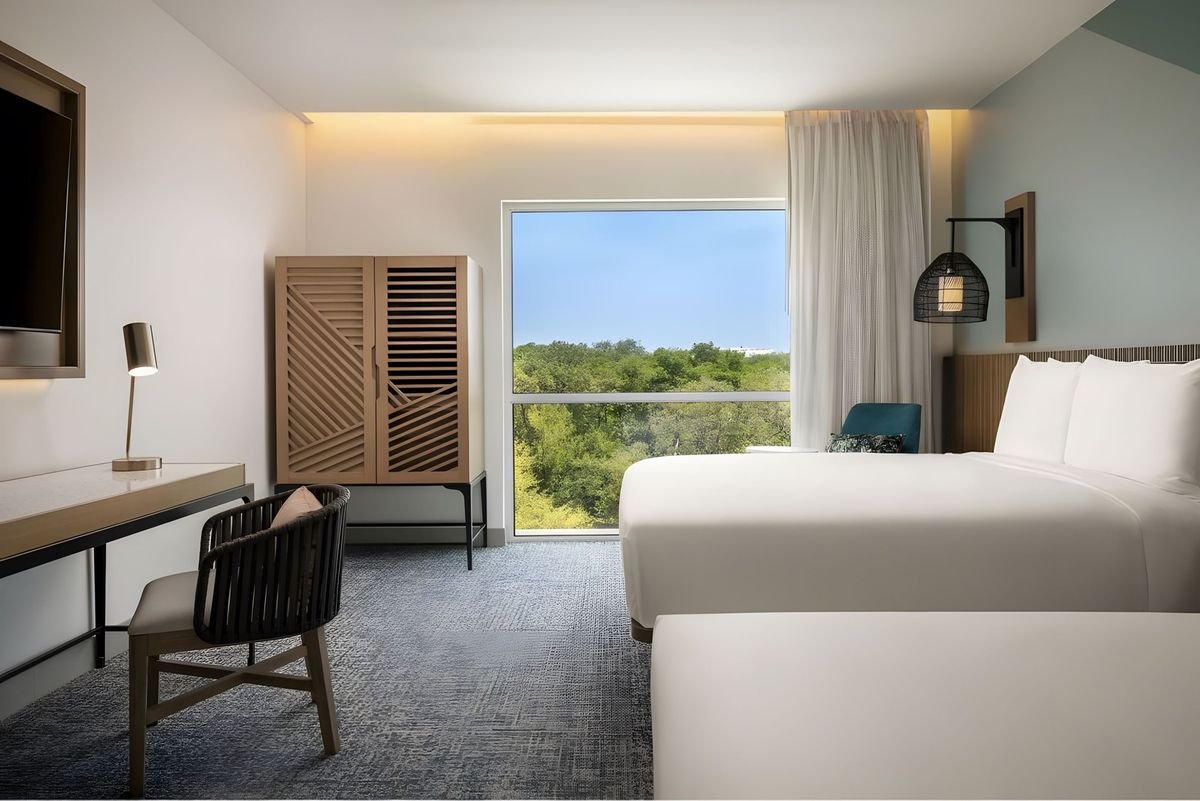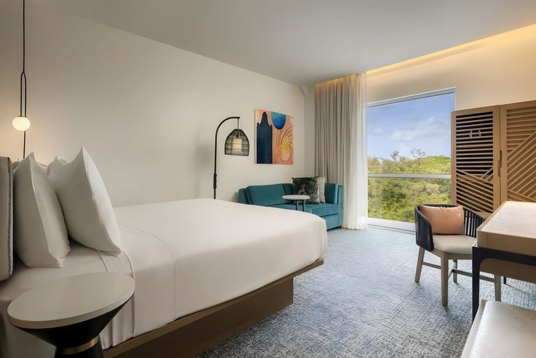 Na malowniczej wyspie Curaçao, gdzie turkusowe wody Morza Karaibskiego konrastują z kolonialnymi budynkami w pastelowych barwach, czeka nowoczesny i elegancki hotel, który doskonale łączy miejski styl z nadmorskim klimatem. Przyjemne, utrzymane w jasnych kolorach wnętrza, 2 baseny, w tym dla dzieci i aż 6 dobrze wyposażonych sal konferencyjnych, czynią go idealnym wyborem zarówno na relaksujący urlop w gronie rodziny, jak i podróż służbową. W restauracji można spróbować klasycznych potraw kuchni międzynarodowej, a bar przy basenie zaprasza na orzeźwiające koktajle i smaczne przekąski. Ale to nie wszystko! Hotel znajduje się tuż obok rezerwatu przyrody, a do urokliwego centrum Willemstad można dostać się dłuższym spacerem. Prezentowany materiał graficzny przedstawia wizualizację obiektu.