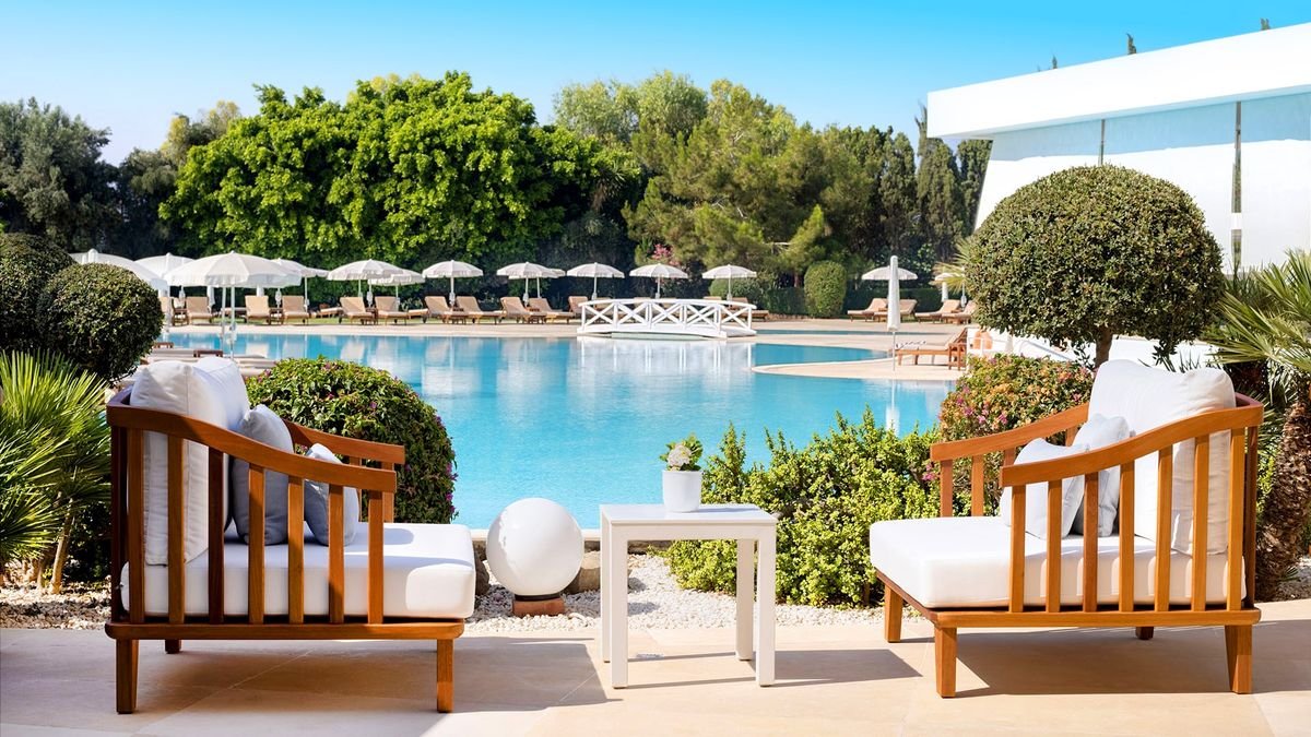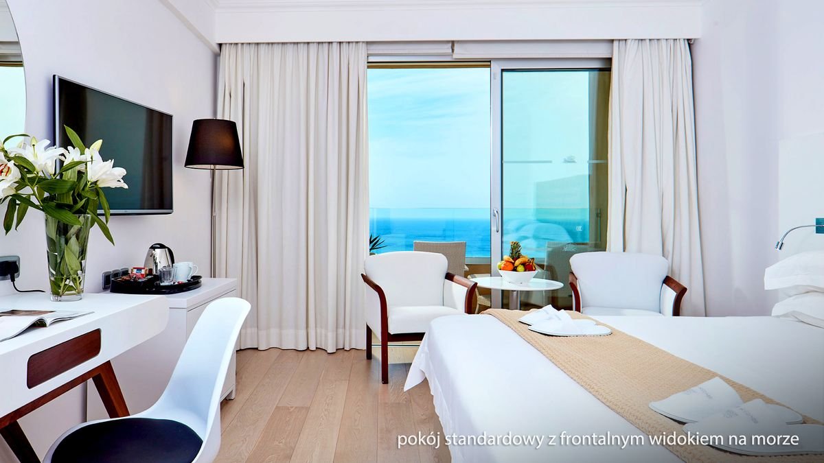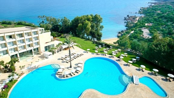 Położony blisko pięknej plaży z drobnym piaskiem oblanej krystalicznie czystymi wodami Morza Śródziemnego, w sąsiedztwie malowniczego Parku Narodowego Cape Greco, jest spełnieniem marzeń o fantastycznych i niezapomnianych wakacjach na ,,wyspie wiecznego słońca”. Urządzony w nowoczesnym i eleganckim stylu, oferuje zakwaterowanie w przestronnych i jasnych pokojach z balkonami, idealnymi do odpoczynku po dniu pełnym wrażeń. Na miejscu są 4 restauracje serwujące doskonałe i urozmaicone potrawy oraz 4 bary, w których wypijesz pysznego drinka podziwiając cudowne widoki na pobliską zatokę. Tutaj nie ma czasu na nudę. Dorośli mogą odprężyć się w saunie lub jacuzzi, popływać w basenie albo zagrać w tenisa, podczas gdy ich pociechy będą szaleć na placu zabaw albo w miniklubie. Wieczorami szczególnie polecamy relaks przy muzyce na żywo i ciekawych pokazach tanecznych.