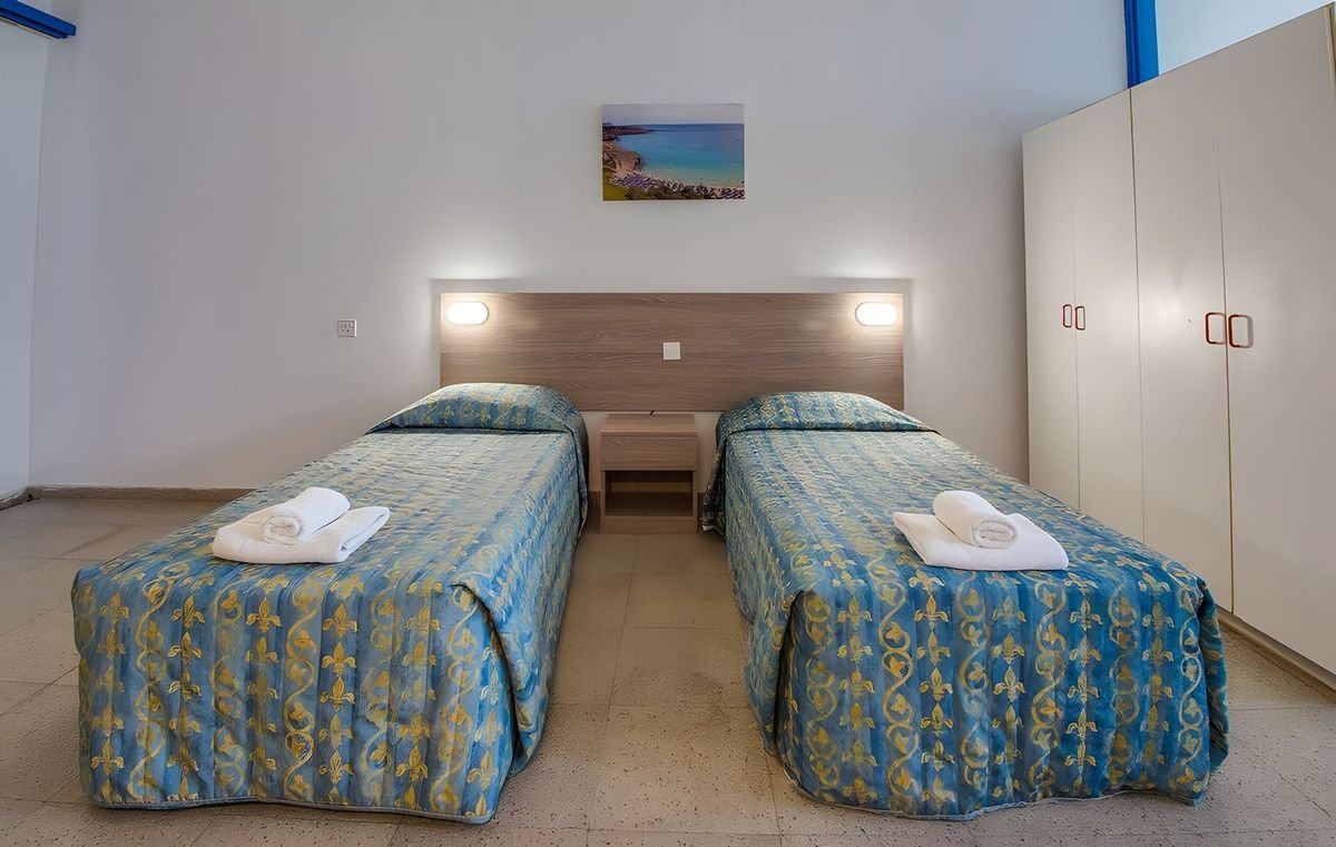Położony blisko centrum popularnego turystycznego kurortu Ayia Napa, w odległości spaceru od plaży wyróżnionej Błękitną Flagą i niedaleko wielu lokalnych atrakcji, zaprasza na urlop w promieniach cypryjskiego słońca. Zbudowany z myślą o wypoczynku dla całej rodziny, oferuje zakwaterowanie w funkcjonalnych pokojach z aneksami kuchennymi. Do dyspozycji Gości jest restauracja śniadaniowa, bar, w którym można wypić orzeźwiającego drinka oraz zadbany basen. Zwolennicy aktywnego spędzania czasu mogą pograć w tenisa stołowego, a najmłodsi pobawić się w brodziku. Całość udanego pobytu dopełni miła i pomocna obsługa, dzięki której wakacje w tym miejscu upłyną w fantastycznej atmosferze.