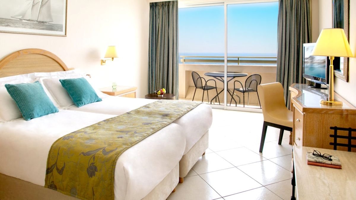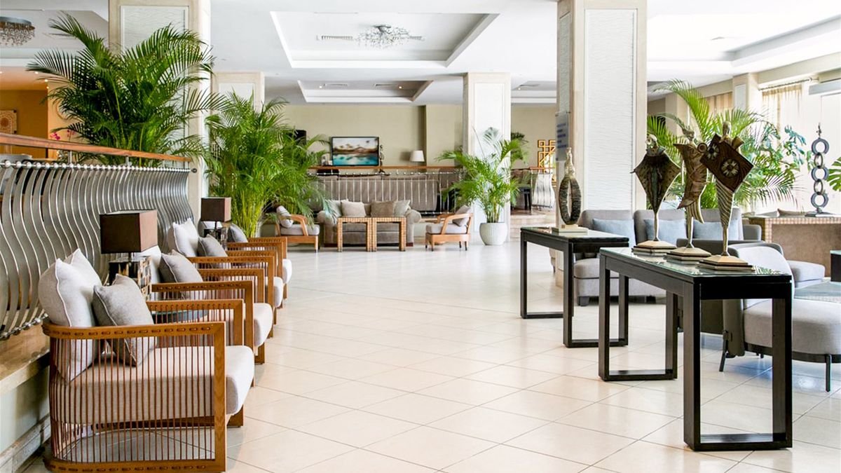 czterogwiazdkowy, zbudowany w 1963 r., regularnie odnawiany, 280 pokoi, 2 budynki: główy i boczny, 5 pięter, windy, lobby, całodobowa recepcja, restauracja główna Thalasa z tarasem i widokiem na morze – dania w formie bufetu, kuchnia międzynarodowa, 2 restauracje à la carte: Red Room – kuchnia europejska, Mermaid – kuchnia śródziemnomorska, 3 bary, w tym przy basenie; przechowalnia bagażu, sklepy; bezpłatny internet bezprzewodowy; za opłatą: room-service, usługa prania i prasowania, lekarz na wezwanie; udogodnienia dla osób z niepełnosprawnościami; akceptowane karty kredytowe: Visa, MasterCard, American Express.