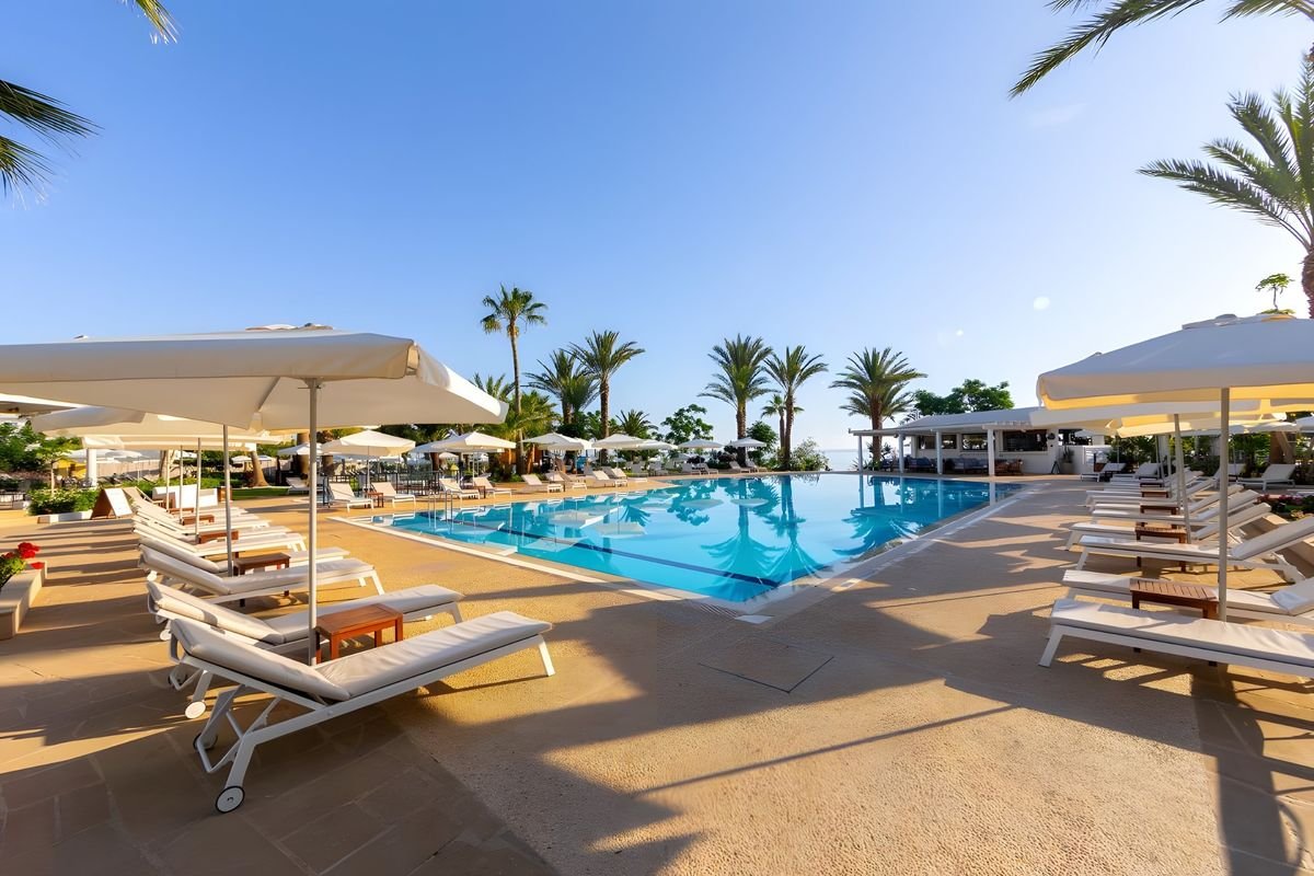 Położony w rozległym, zadbanym ogrodzie, tuż przy piaszczystej plaży otulonej wodami Morza Śródziemnego, to doskonały wybór na rodzinne wakacje! Na miejscu bogata oferta sportowo-rekreacyjna, możesz popływać w basenie, zrelaksować się w centrum spa, a dzieciaki radośnie spędzą czas pluskając się w brodziku, bawiąc w miniklubie lub na placu zabaw – tu nie ma czasu na nudę! Fani różnorodnych smaków zdecydowanie znajdą tu coś dla siebie, w restauracjach dania kuchni międzynarodowej, greckiej i lokalnej, a w barach przekąsisz coś w ciągu dnia i napijesz się orzeźwiających kolorowych koktajli. Całość udanego wypoczynku dopełni chwalona przez Gości miła i chętna do pomocy obsługa, zapraszamy na wakacje na Cyprze!