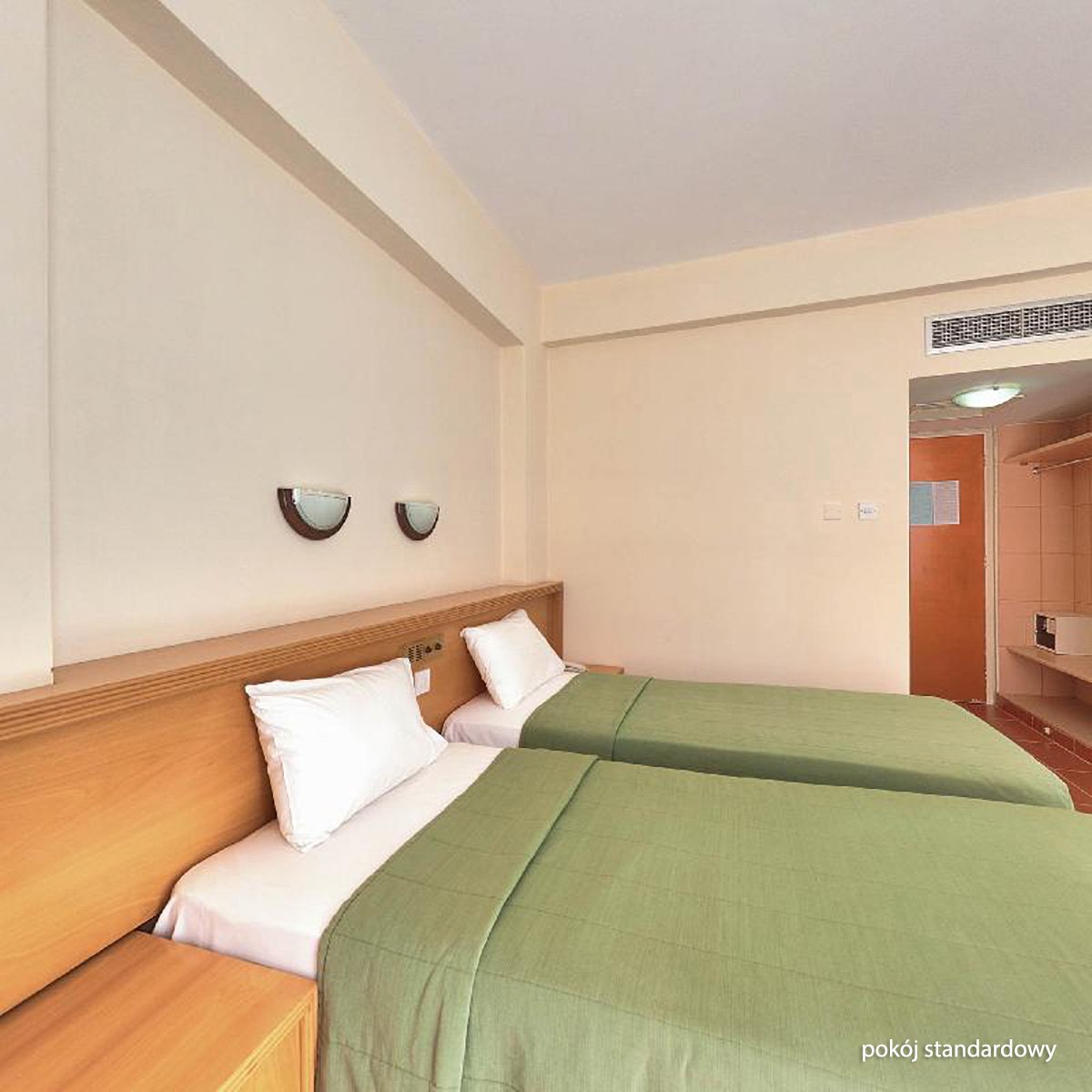 standardowy: 2-os. (możliwość 1 dostawki), w budynku 1, ok. 20 m², indywidualnie sterowana klimatyzacja (w sezonie letnim) lub ogrzewanie (w sezonie zimowym), łazienka (wanna lub prysznic, wc; suszarka), telewizja satelitarna, internet bezprzewodowy, telefon; za opłatą: sejf (ok. 14 EUR/tydz.); bezpłatne łóżeczko dla dziecka do 2 lat na zamówienie przed przyjazdem; balkon; rodzinny: 5-os. (możliwość 2 dostawek, maks. 3. os. dorosłe), w budynku 2, ok. 34-50 m², w zależności od ilości zakwaterowanych osób: 1, 2 lub 3 pomieszczenia połączone drzwiami, wyposażenie jak w pokoju standardowym; dodatkowo: lodówka, czajnik i kubki; pokój rodzinny za dopłatą.