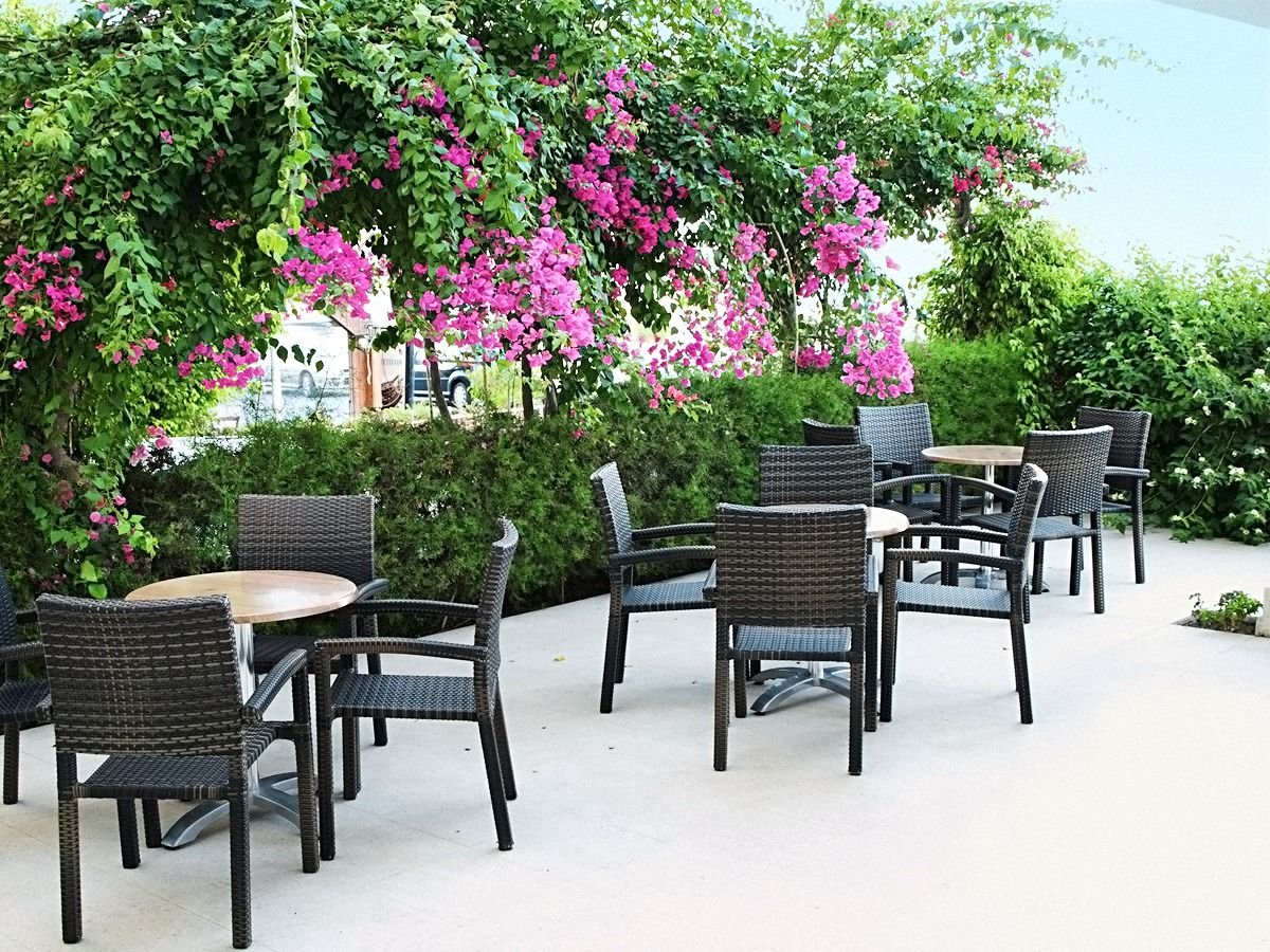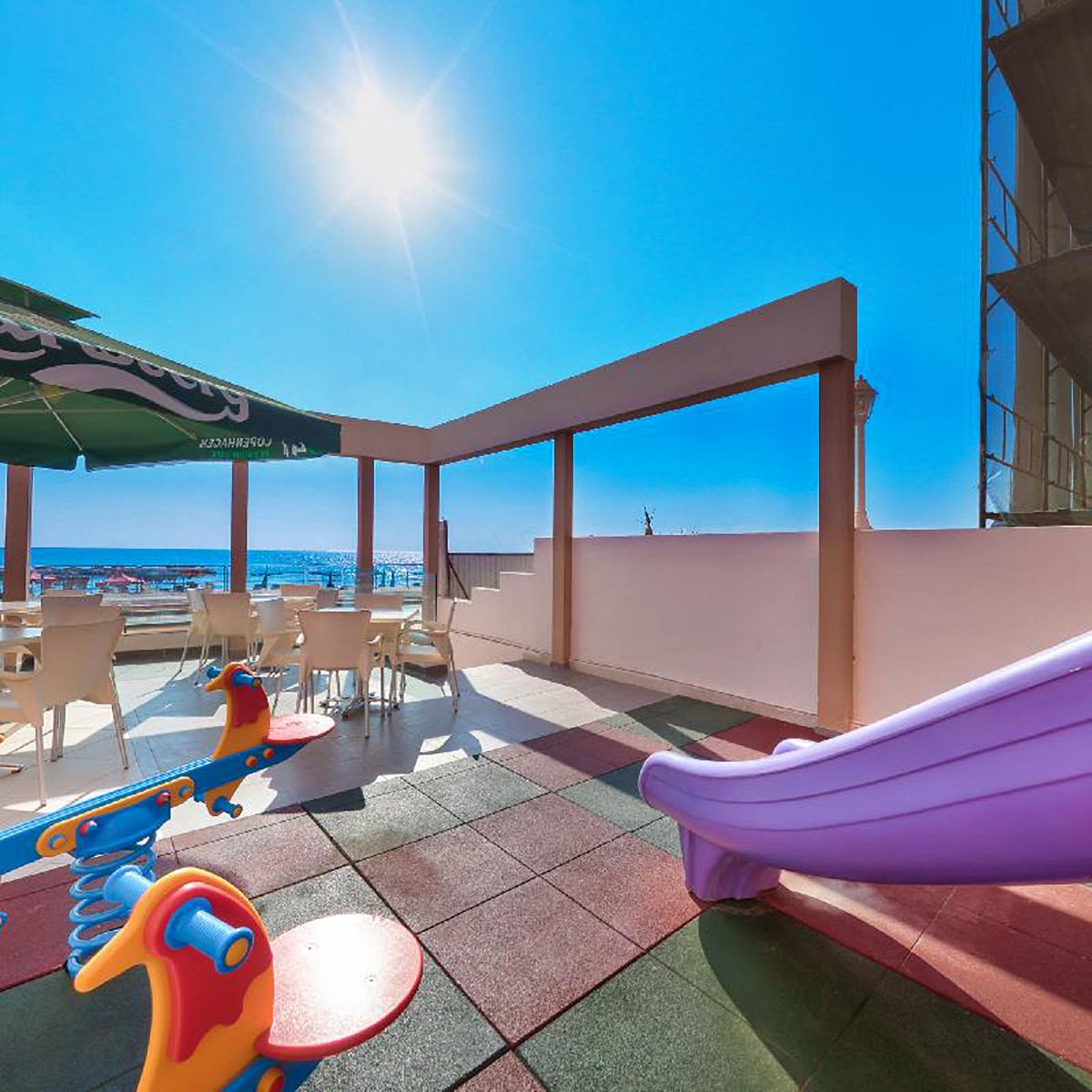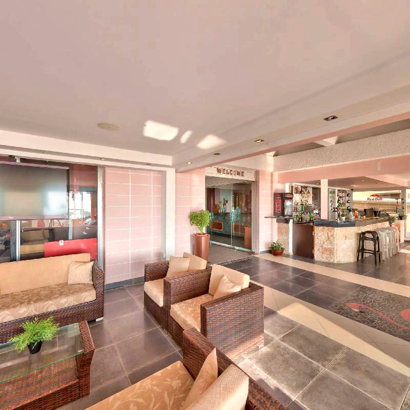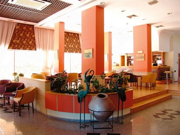 trzygwiazdkowy, zadbany, zbudowany w 1995 r., generalny remont budynku 2 w 2012 r., 64 pokoje standardowe, 2 budynki (budynek 1 - pokoje standardowe, budynek 2 - pokoje rodzinne), 5 pięter, 2 windy, lobby, całodobowa recepcja, 2 restauracje – dania w formie bufetu, kuchnia międzynarodowa, dostępne foteliki dla dzieci, dania wegetariańskie, 2 bary; kantor, mały plac zabaw; centrum konferencyjne dla 150 osób, taras z widokiem na morze, ogród; za opłatą: internet bezprzewodowy przy recepcji (ok. 4 EUR/godz.), room-service, sejf w recepcji, fryzjer, opiekunka do dziecka; akceptowane karty kredytowe: Visa, MasterCard.