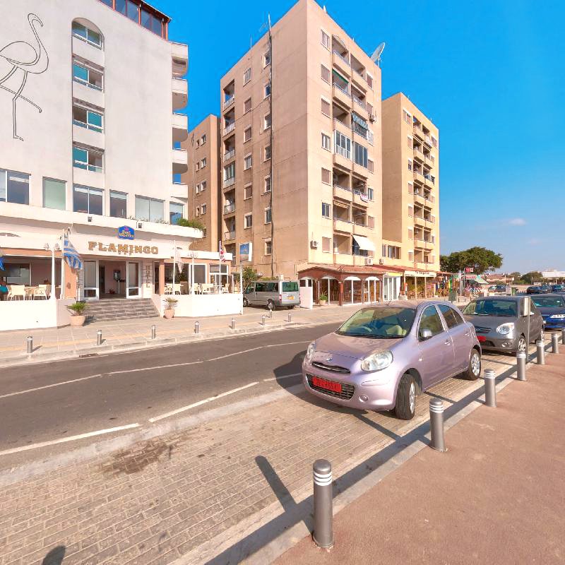 ok. 2 km od centrum LARNAKI, w pobliżu sklepy i bary, przy drodze lokalnej; ok. 500 m od Słonego Jeziora w Larnace; ok. 4 km od portu lotniczego w Larnace; ok. 155 km od portu lotniczego w Pafos; przystanek autobusowy przy hotelu (ok. 1,5 EUR/centrum Larnaki); w pobliżu hotelu korytarz powietrzny, przelatujące samoloty są słyszalne, ale nie uciążliwe.