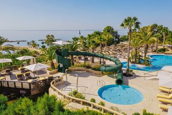 Miejsce, w którym elegancja, nowoczesność i najwyższa jakość usług idą razem w parze, doskonały zarówno na rodzinne wakacje, jak i romantyczny wyjazd we dwoje, zbiera pozytywne opinie zarówno za niesamowitą obsługę oraz smaczne dania, jak i za lokalizację oraz cudownie zaprojektowane pokoje. Tutaj nuda nie istnieje – Goście zachwycają się świetnie zaaranżowanymi basenami, dużym wyborem fantastycznych restauracji oraz szeroką ofertą sportową. Pociechy również nie będą zawiedzione – miniklub, animacje czy może czas spędzony w brodziku ze zjeżdżalnią? Do wyboru do koloru! Błogi relaks zapewni hotelowe spa z bogatą ofertą masaży i zabiegów, a dla tych, którzy wolą aktywnie spędzać czas przygotowano kort tenisowy oraz siłownię. Znajdujący się w czołówce najlepszych hoteli na Cyprze jest synonimem rajskich wakacji, który gwarantuje pięciogwiazdkowy poziom świadczonych usług – skradnie i Twoje serce!