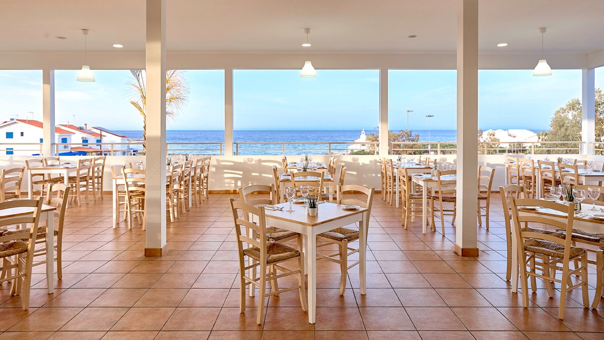 śniadanie (7.00-10.00), kolacja (19.00-21.30) w formie bufetu w restauracji Estia, obiad (12.30-14.30) w formie bufetu w barze przy basenie; przekąski w barze przy basenie (10.30-12.00, 15.00-17.00), lody dla dzieci (11.00-12.00, 16.00-17.00); napoje bezalkoholowe i lokalne napoje alkoholowe w barze przy basenie lub w barze w restauracji (10.00-23.00); wymagane noszenie opasek all inclusive.
