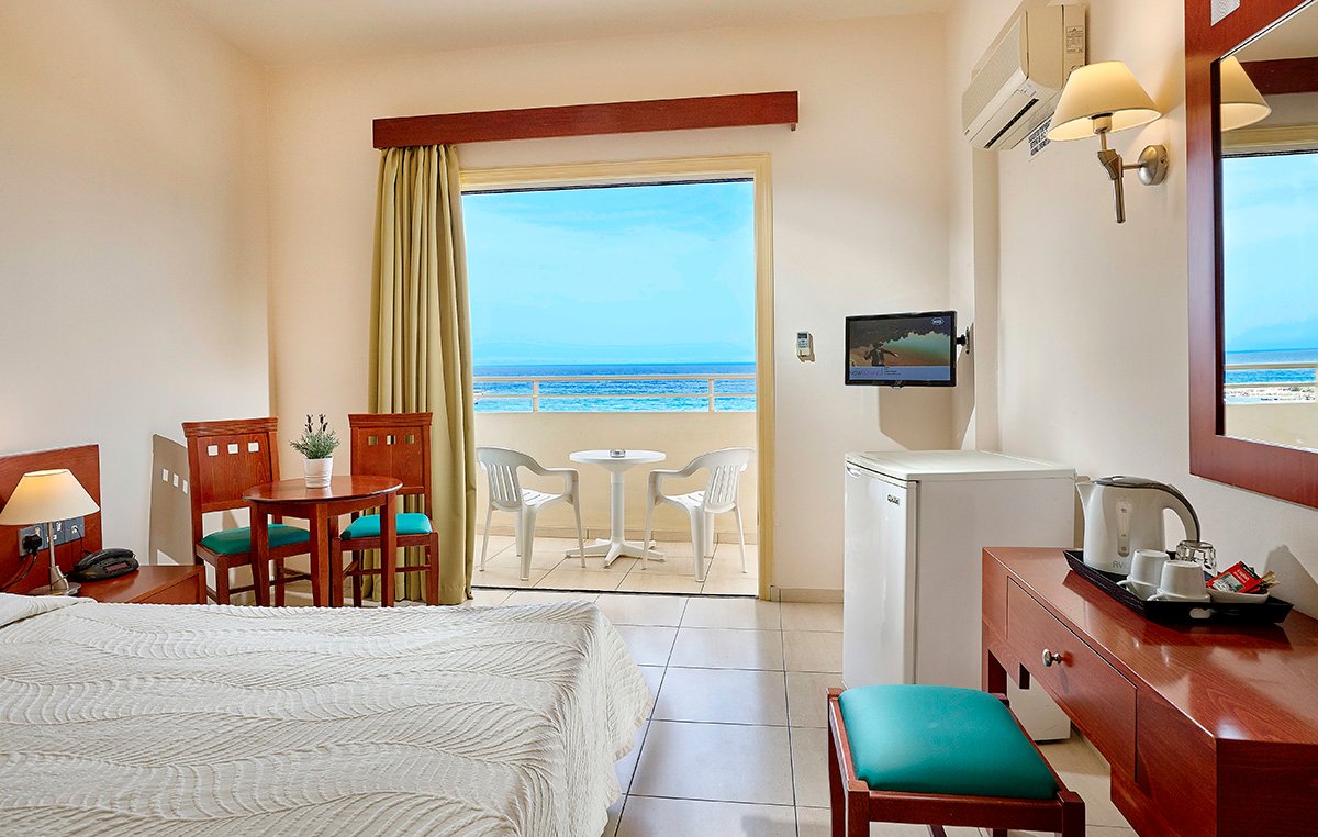 standardowy: 2-os. (możliwość 1 dostawki), ok. 24 m2, indywidualnie sterowana klimatyzacja (w sezonie letnim), łazienka (wanna lub prysznic, wc; suszarka), telewizor, telefon, lodówka, zestaw do kawy/herbaty; za opłatą: internet bezprzewodowy (ok. 10 EUR/dzień, ok. 30 EUR/tydz.), sejf (depozyt: 30 EUR); bezpłatne łóżeczko dla dziecka do 2 lat na zamówienie przed przyjazdem; balkon (stolik i krzesełka).