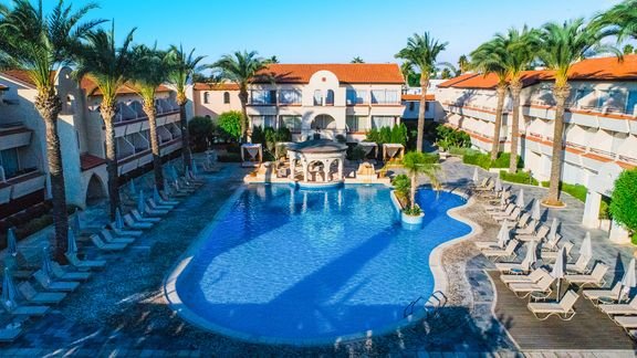 Położony w samym centrum popularnego kurortu Ayia Napa z mnóstwem barów, restauracji, dyskotek oraz sklepów. Idealny dla Gości szukających rozrywki i spragnionych wszelkich atrakcji turystycznych. Architektura budynku stylizowana jest na średniowieczny monastyr, z pięknym wewnętrznym dziedzińcem, gdzie nieregularny basen otaczają malownicze palmy. Znakomite połączenie tradycji śródziemnomorskiej i nowoczesnych elementów. Przeznaczony wyłącznie dla osób dorosłych!