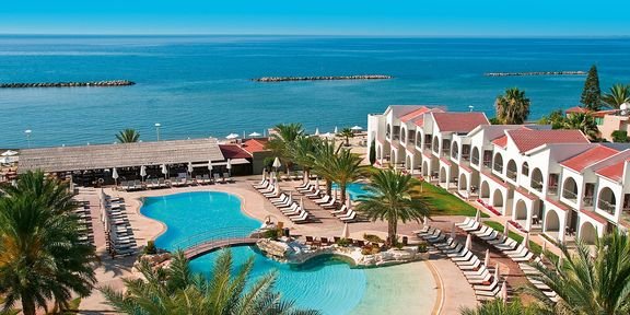 ok. 7 km od centrum LARNAKI za słynną promenadą palmową oraz bizantyjskim kościółkiem św. Łazarza, w pobliżu hotelu sklepy i restauracje; ok. 12 km od lotniska w Larnace, ok. 145 km od lotniska w Pafos; przystanek autobusowy ok. 50 m od hotelu (ok. 2,5 EUR/centrum Larnaki).