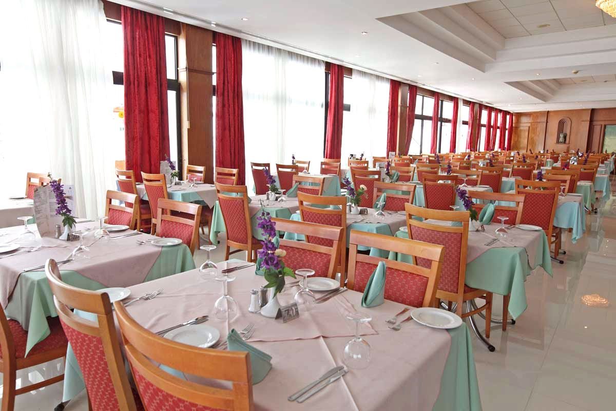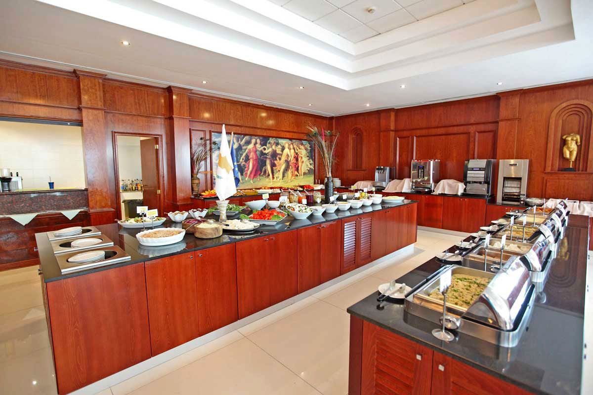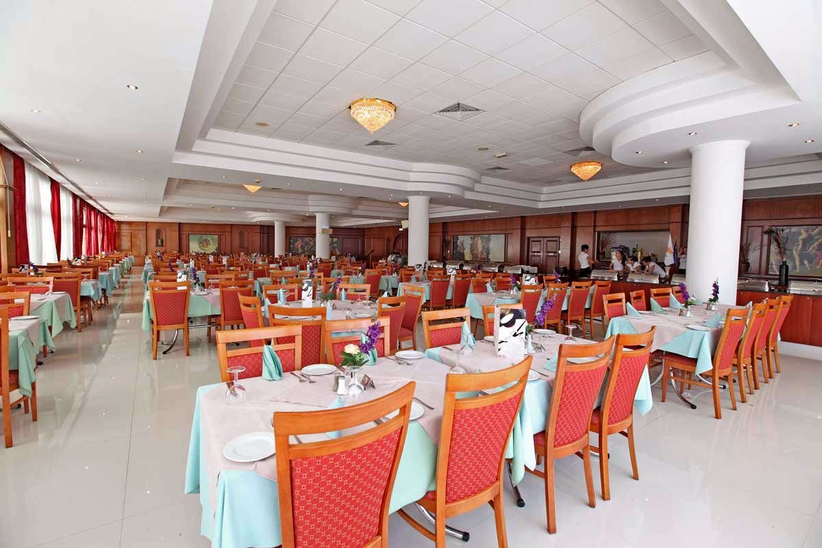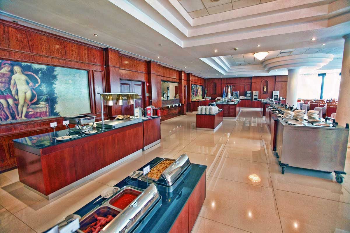 śniadanie (7.00-10.00) w formie bufetu w restauracji Athena, obiad (12.30-14.30) w formie bufetu lub à la carte w restauracji Artemis, kolacja (18.30-21.30) w formie bufetu w restauracji Athena; przekąski, dania z grilla (10.30-12.00, 14.30-17.00, 22.00-24.00) w restauracji Artemis i w Hermes & Pool Bar; piwo, wino, kawa, herbata i zimne napoje alkoholowe (10.00-24.00) w restauracji Artemis, lokalne napoje alkoholowe i napoje bezalkoholowe (10.00-24.00) w Hermes & Pool Bar; wymagane noszenie opasek all inclusive.