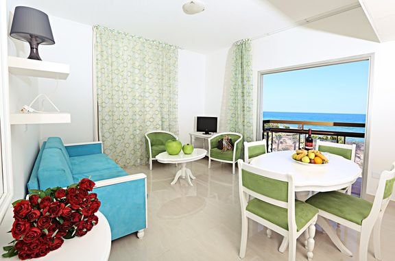 2-os. (możliwość 1 dostawki – sofa), ok. 30 m², klimatyzowany, łazienka (prysznic, wc; suszarka), telewizja satelitarna, aneks kuchenny, telefon, lodówka, sejf; balkon (stolik i krzesełka); boczny widok na morze za dopłatą.