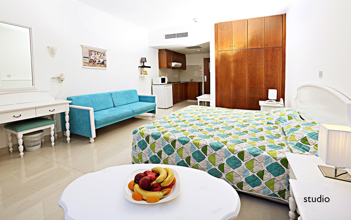 Kompleks studio i apartamentów w rejonie Cypru słynącym z pięknych plaż. Położony przy niedużej plaży w zatoce Marlita oferuje wszystko, co potrzeba do udanego wypoczynku z rodziną lub w gronie przyjaciół: duży basen w kształcie laguny, brodzik dla dzieci, animacje, pakiet all inclusive. Hotel leży niedaleko Protaras z nocnym życiem, gdzie można dojść przyjemnym spacerem ścieżką nad morzem.