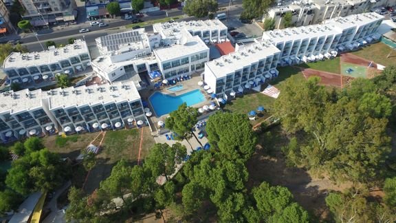 trzygwiazdkowy, zbudowany w 1970 r., całkowicie odnowiony w 2017 r., 140 pokoi, 5 budynków: główny i 4 boczne, do 2 pięter, lobby, całodobowa recepcja, 2 restauracje: główna – dania w formie bufetu, kuchnia międzynarodowa i cypryjska, Mesoyios Fish Tavern – à la carte, ryby i owoce morza, w restauracjach dostępne foteliki dla dzieci, bar przy basenie; parking; śródziemnomorski ogród, bezpłatny internet bezprzewodowy; za opłatą: lekarz na wezwanie, pralnia, usługa prasowania, wypożyczalnia samochodów (oferta zewnętrzna); akceptowane karty kredytowe: Visa, MasterCard, American Express, Diners Club.