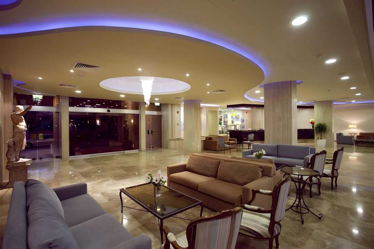 czterogwiazdkowy, zbudowany w 1978 r., odnowiony w 2014 r., 138 pokoi, 1 budynek, 7 pięter, 2 windy, lobby, całodobowa recepcja, 2 restauracje: główna Poseidon – dania w formie bufetu i à la carte, kuchnia międzynarodowa, wieczory tematyczne, dostępne foteliki dla dzieci, dania wegetariańskie, Aegean Coffee Shop – dania w formie bufetu i à la carte, kuchnia międzynarodowa, dostępne menu dla dzieci, dania wegetariańskie, 3 bary, w tym przy basenie i przy plaży; butik, sklep z pamiątkami, parking; centrum konferencyjne dla maks. 350 osób, bezpłatny internet bezprzewodowy; za opłatą: room-service, pralnia, usługa prasowania, wypożyczalnia rowerów (oferta zewnętrzna); akceptowane karty kredytowe: Visa, MasterCard.