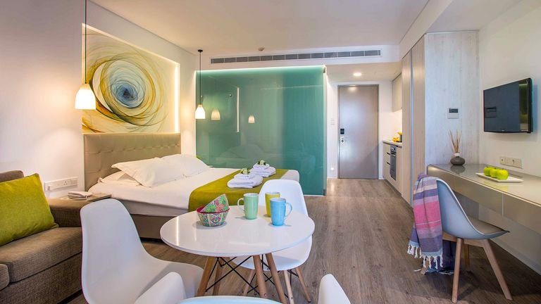 Elegancki, zbudowany zgodnie z panującymi trendami, butikowy hotel z wyjątkową atmosferą to doskonały pomysł na urlop z rodziną. Rewelacyjne położony, zapewnia łatwy dostęp do wielu atrakcji – tylko kilka kroków stąd do pięknej plaży Alykes i niedaleko do parku archeologicznego i portu w Kato Pafos oraz tętniącego życiem centrum Pafos. Czas biegnie tu na leniwym wypoczynku przy basenie lub cudownym relaksie w hotelowym centrum wellness. Mocną stroną są tutaj pokoje – nowoczesne i wygodne, funkcjonalne studia i przestronne apartamenty. O podniebienia Gości dbają 2 ciekawie zaaranżowane restauracje, a pysznej kawy można się napić w jednym z 4 barów. Zbieraj siły w hotelu i zwiedzaj okolicę, zaplanuj też dzień na wizytę w aquaparku – świetną rozrywkę nie tylko dla dzieci!