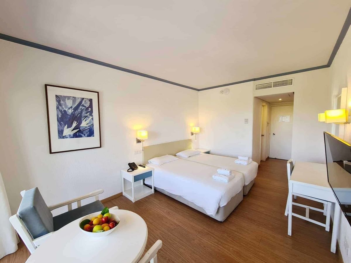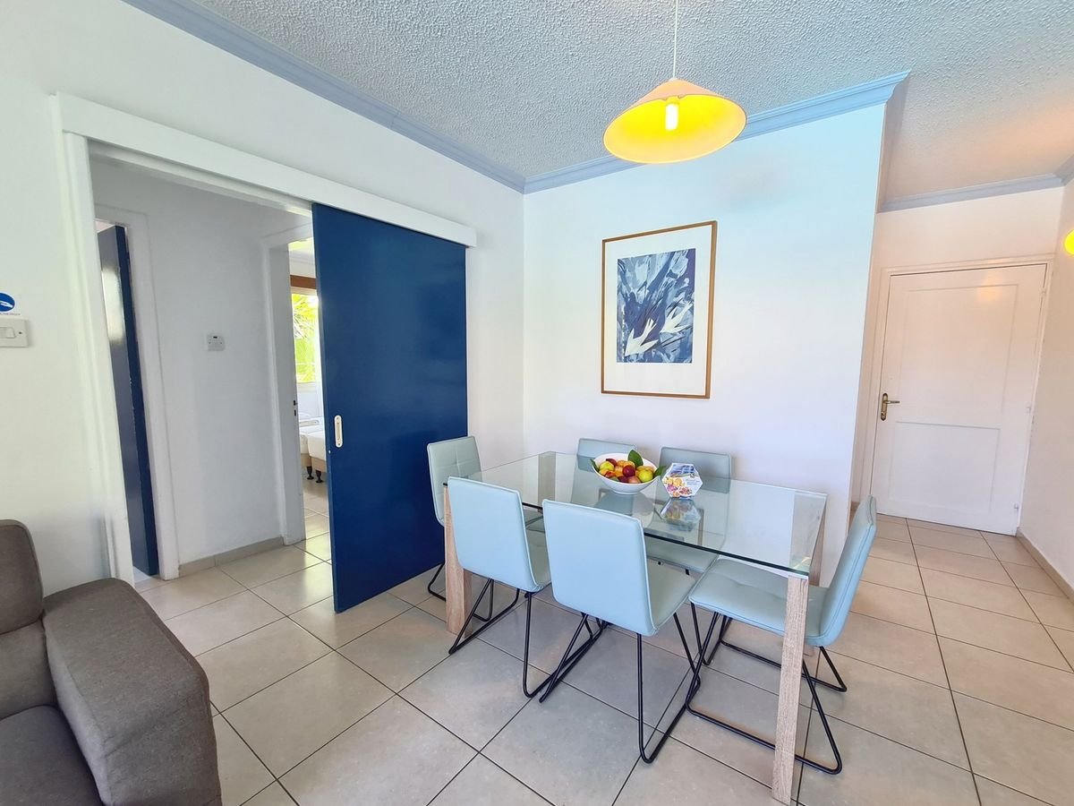 Otoczony zielenią, położony niedaleko centrum oraz blisko pięknego portu i atrakcji miasteczka Pafos. Urządzony w śródziemnomorskim stylu, urzeknie poszukiwaczy idealnej bazy wypadowej do zwiedzania. W hotelu jest basen, restauracja, bar, wygodne pokoje typu studio i przestronne apartamenty z jedną lub dwiema sypialniami. Wszystkie pokoje posiadają aneks kuchenny oraz balkon lub taras z ładnymi widokami. To doskonałe miejsce na rodzinne wakacje – dorośli mogą tu prawdziwie wypocząć, a dzieciaki poszaleć na placu zabaw, czy podczas anumacji Blisko stąd również do ładnej, piaszczystej plaży łagodnie schodzącej do morza, a w okolicy znajduje się rówwnież jedna z największych atrakcji w regionie – park archeologiczny i starożytne Grobowce Królewskie.