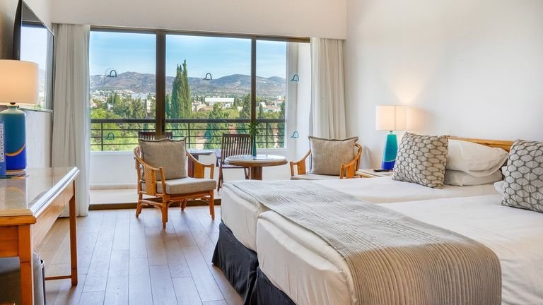 Rewelacyjnie położony, w spokojnej okolicy, blisko najpiękniejszej plaży na zachodnim wybrzeżu Cypru – Coral Beach. Przy hotelu jest prywatna marina oraz wydzielony odcinek na publicznej plaży z bezpłatnym serwisem. Tuż obok, w zielonym i ładnie zagospodarowanym ogrodzie, jest basen w kształcie laguny, gdzie w ciągu dnia organizowane są zajęcia sportowe. Przestronne pokoje są elegancko urządzone, a w każdym dostępny jest bezpłatny internet bezprzewodowy. Hotel oferuje wiele form spędzania wolnego czasu, np. centrum rękodzieła Arts & Crafts, a dla rodzin z dziećmi The Coral Creche – profesjonalny żłobek. Jest tu również największe na Cyprze centrum konferencyjne z nowoczesnym wyposażeniem.