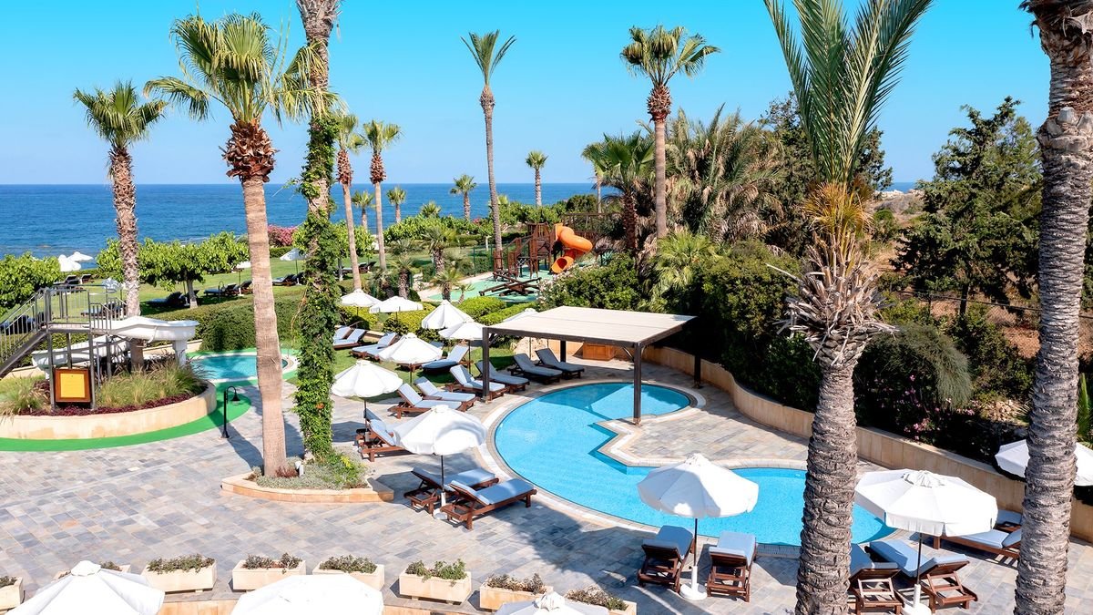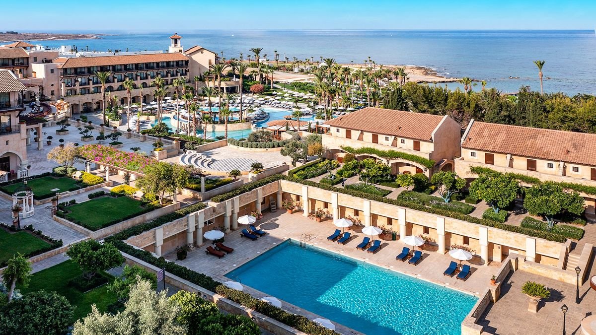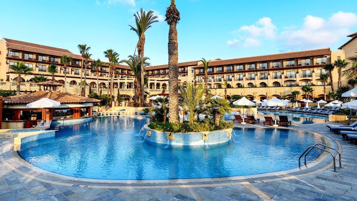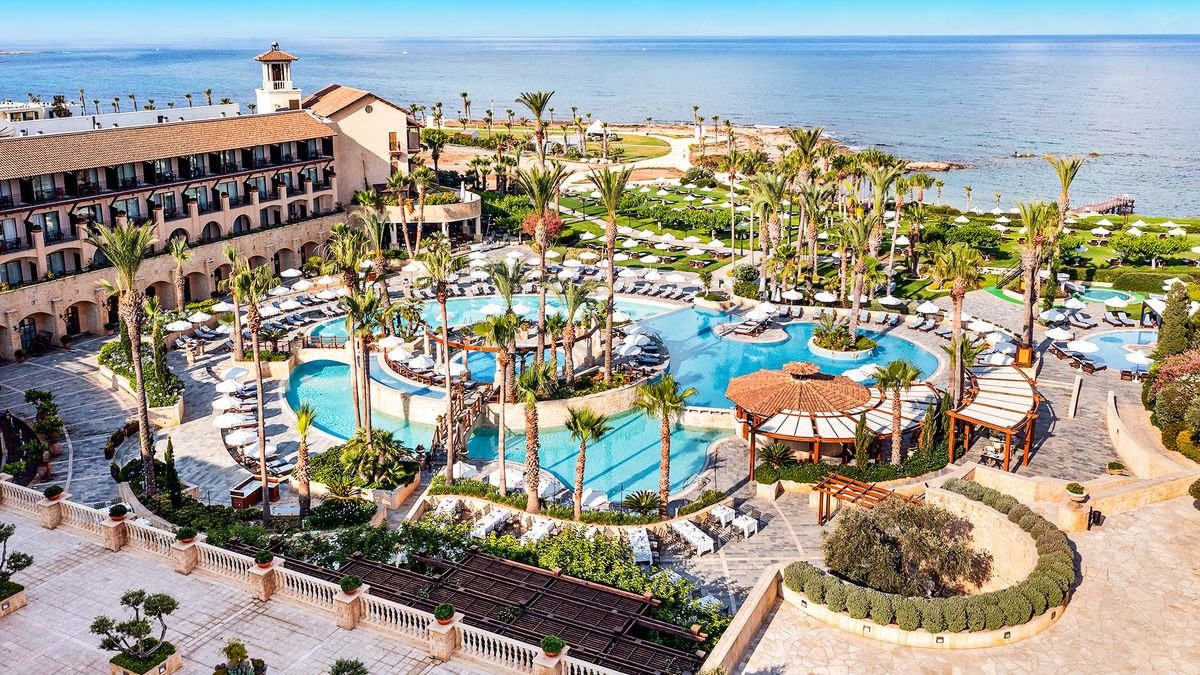 Rozległy, luksusowy kompleks stylizowany na renesansowy zamek. Zdobywca wielu nagród i certyfikatów, słynie przede wszystkim z eleganckich wnętrz, dobrego serwisu i świetnej kuchni, której można spróbować w 5 tematycznych restauracjach! To smaki cypryjskie, dalekowschodnie, włoskie i międzynarodowe, których warto kosztować z kieliszkiem dobrego wina. Hotel położony jest blisko piaszczystej plaży z serwisem i niedaleko centrum Pafos, w którym czeka wiele atrakcji turystycznych. W hotelu wypoczywać można także na tarasie podziwiając zachwycające widokami na morze, przy pięknie zaprojektowanym basenie w kształcie laguny z hydromasażem lub w ekskluzywnym Opium Heath Spa, które nie tylko odpręża, ale i upiększa. Oto doskonałe miejsce na romantyczne wakacje!