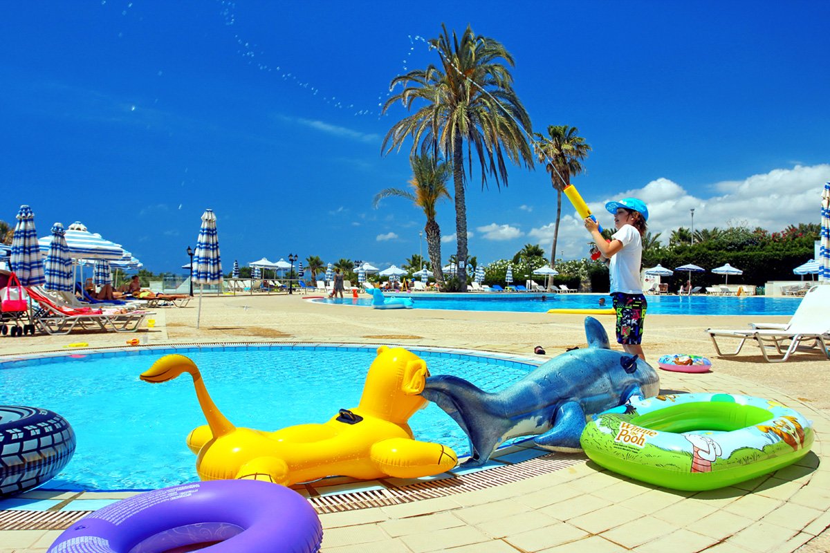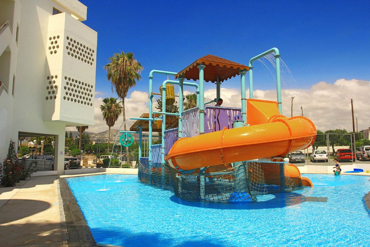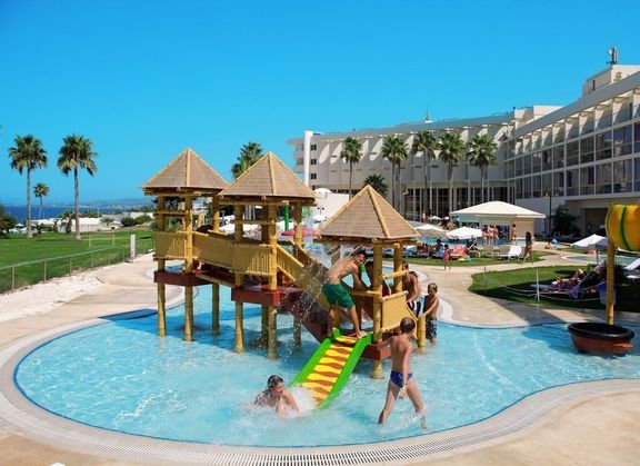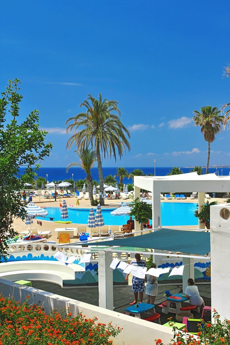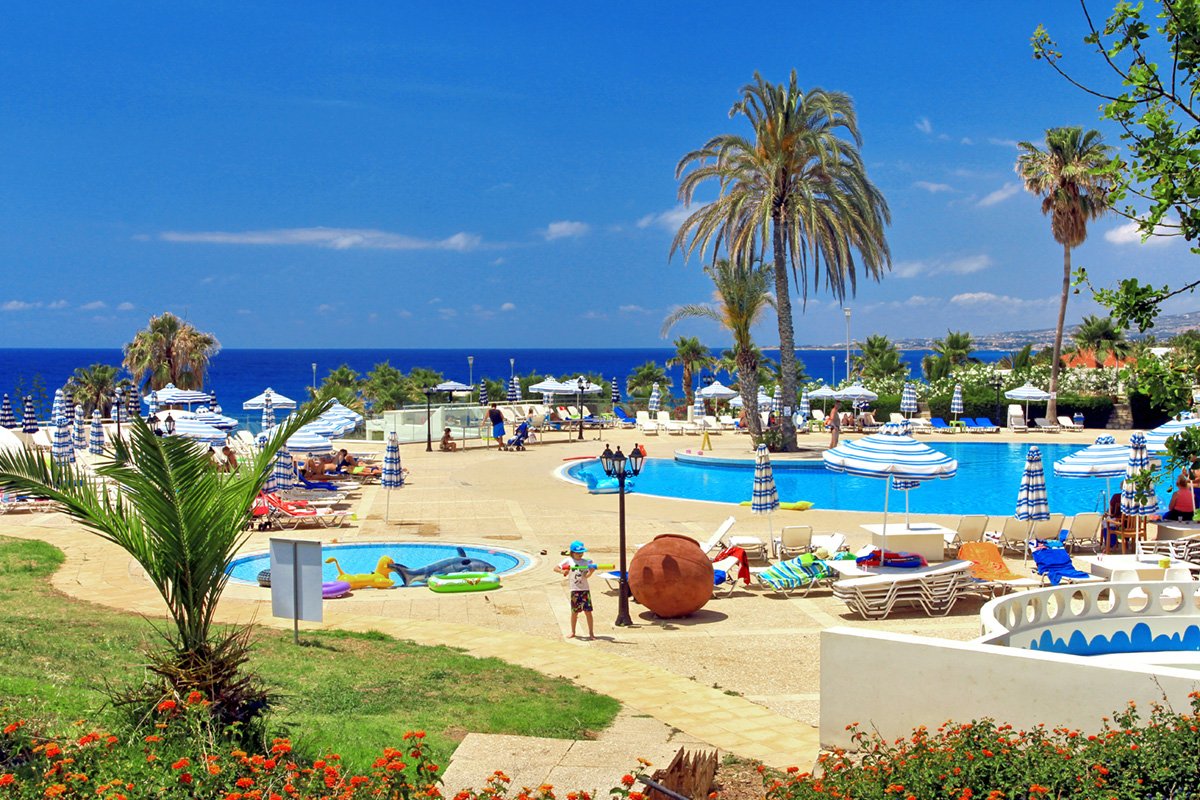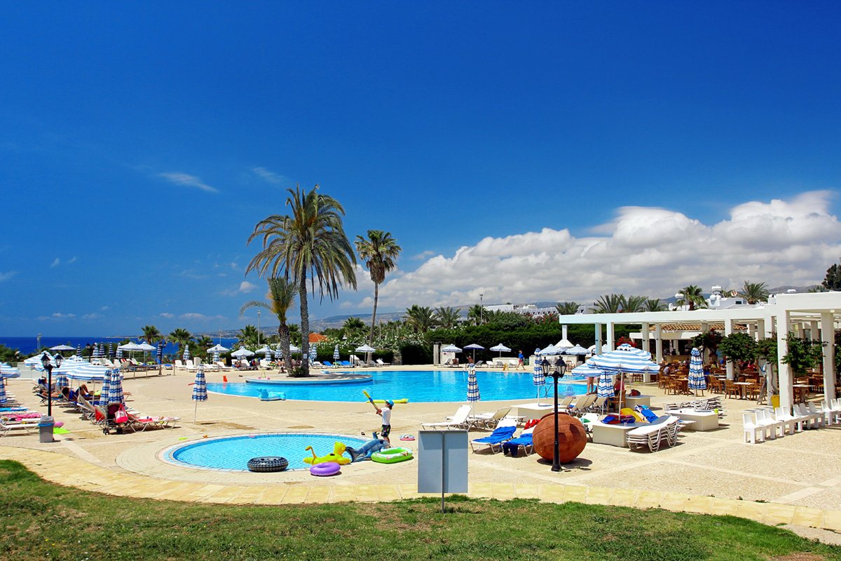 Gruntownie odnowiony, z bogatym zapleczem sportowo-rekreacyjnym, jest doskonałą propozycją na aktywne wakacje z rodziną. Dzieciaki szczególnie ucieszą animacje, miniklub, wszyscy świetnie będą się bawić w parku wodnym. Otoczony pięknym śródziemnomorskim ogrodem jest ceniony za dobrą kuchnię i wyjątkowo miłą obsługę. Hotel leży niedaleko plaży, gdzie Goście mogą korzystać z bezpłatnych parasoli i leżaków. Niedaleko jest także do ciekawych miejsc wartych zwiedzenia, takich jak park archeologiczny z Grobowcami Królewskimi oraz pięciokopułowa bazylika Agia Paraskevi w pobliskiej miejscowości Geroskipou.