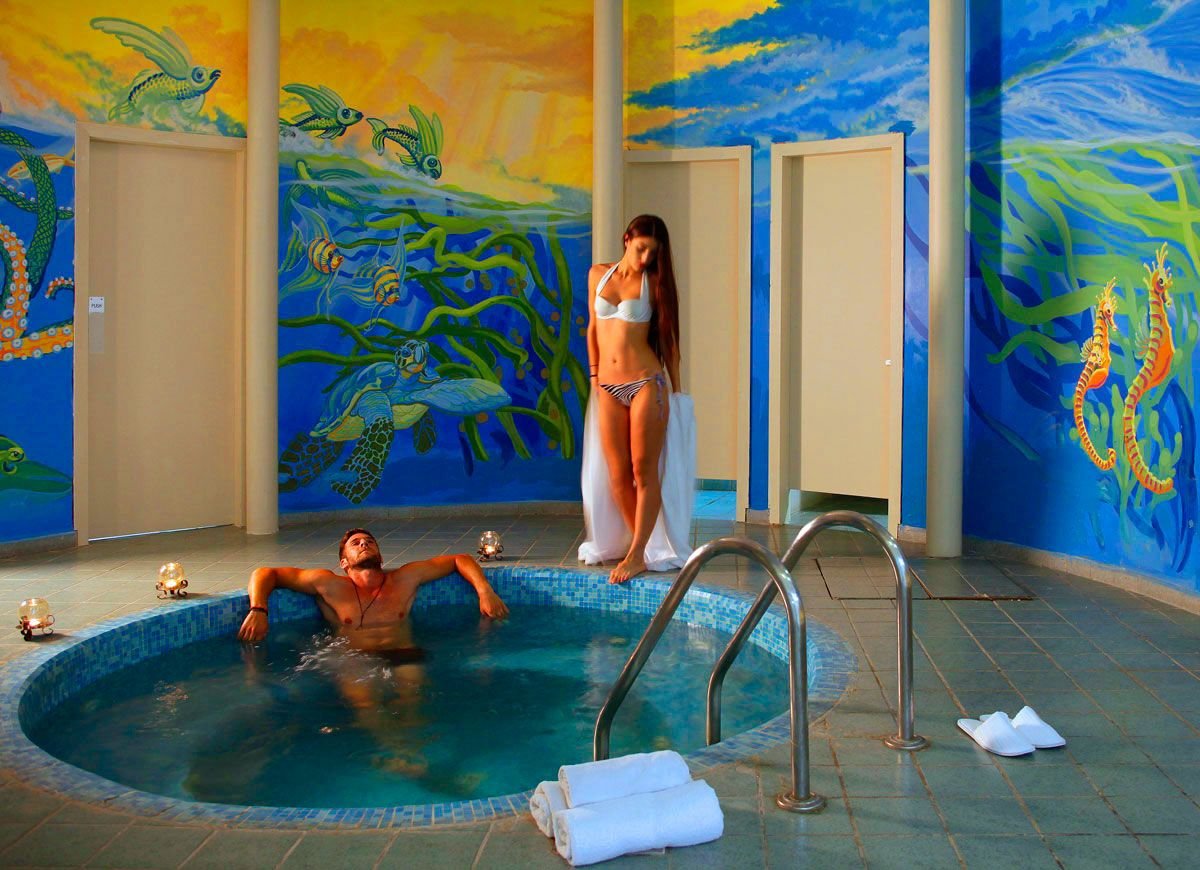 2 baseny, nieregularny kształt, słodka woda: ok. 620 m², gł. 0,9-1,7 m, i ok. 620 m², gł. do 1,4 m, jacuzzi, 2 brodziki dla dzieci, jeden z wodnym placem zabaw, słodka woda, gł. 0,4 m, przy basenach bezpłatne parasole i leżaki, ręczniki za kaucją (ok. 10 EUR), aquapark (czynny latem); basen kryty, prostokątny kształt, słodka woda, ok. 90 m², jacuzzi, podgrzewany w sezonie zimowym; kort tenisowy, wypożyczalnia sprzętu za kaucją (20 EUR), siatkówka plażowa, tenis stołowy, piłka wodna, siłownia, rzutki, koszykówka, boule; plac i pokój zabaw dla dzieci, miniklub (4-12 lat), klub dla nastolatków (13-17 lat), animacje: zajęcia sportowe, wieczorne występy, muzyka na żywo; za opłatą: oświetlenie kortu tenisowego, sala gier, bilard; centrum spa Nirvana: różne rodzaje masaży, sauna, aromaterapia, zabiegi upiększające.