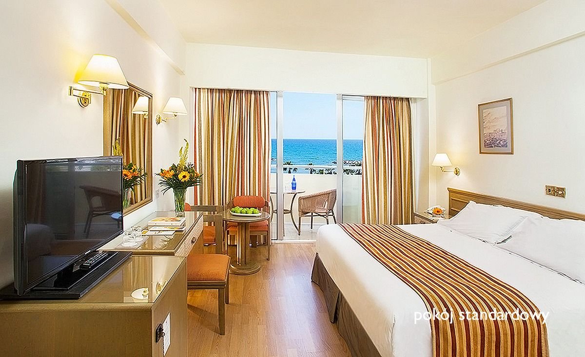Elegancki i zadbany, położony w pierwszej linii brzegowej, z zachwycającym widokiem na turkusowe morze. Tuż obok piaszczysta plaża, świetna na rodzinny wypoczynek, idealna również dla amatorów wodnych aktywności. Dumą hotelu jest piękny basen z kaskadą i hydromasażem, ulubione miejsce na relaks i ochłodę, dzieciaki ucieszą się z basenu z wodnym placem zabaw. Wygodne, urządzone w pastelowych kolorach pokoje, restauracje nie tylko z dobrą kuchnią, ale również z widokiem na basen lub morze umilą pobyt każdemu z Gości. Blisko hotelu przystanek autobusowy, z którego łatwo jest się dostać do centrum Larnaki z piękną Promenadą Palmową i bizantyjskim kościołem św. Łazarza.
