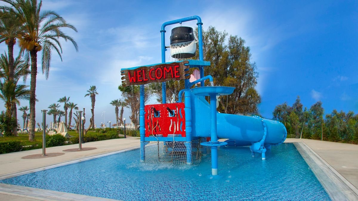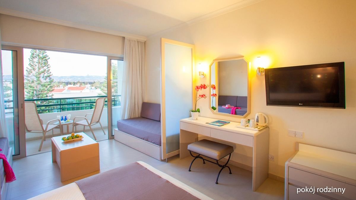 Firmowany przez znaną grupę Louis Hotels, oferuje komfortowy pobyt i wysoki poziom formuły all inclusive. Hotel leży przy plaży, wzdłuż której biegnie spacerowa ścieżka prowadząca aż do centrum miejscowości. Na miejscu wszystko, co potrzebne do udanego wypoczynku z rodziną lub w gronie przyjaciół: dużo udogodnień sportowych, atrakcje dla najmłodszych, trochę wspólnej zabawy i znakomita wakacyjna atmosfera. Zadbany ogród z zielonymi trawnikami i otoczony palmami basen to wymarzone miejsca na pełny relaks. Eleganckie pomieszczenia recepcyjne, znakomita kuchnia, profesjonalna obsługa – wszystko na 4 gwiazdki z plusem!