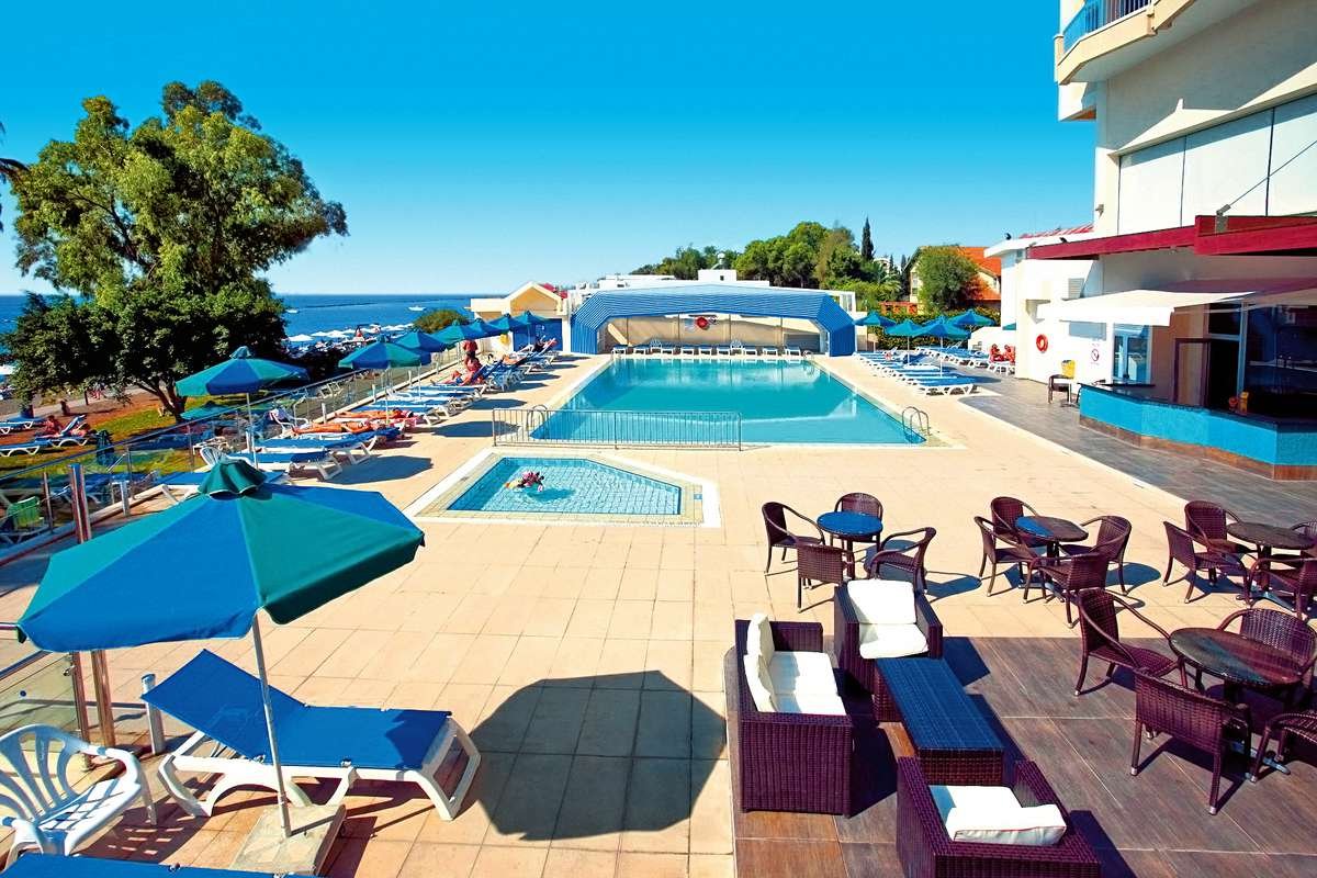 czterogwiazdkowy, zbudowany w 1979 r., odnowiony na przełomie 2008/2009 r., 138 pokoi, 1 budynek, 7 pięter, 2 windy, przestronne i eleganckie lobby, całodobowa recepcja, restauracje: Coffee Shop i Posejdon – dania w formie bufetu, dostępne foteliki dla dzieci, dania wegetariańskie, podczas kolacji obowiązuje strój formalny (panowie długie spodnie); bar w lobby, bar przy basenie (czynny latem), bar na plaży (czynny latem), sklep z pamiątkami; sala bankietowa Neptune, sala konferencyjna dla 120 osób, taras z widokiem na morze, niewielki ogród; za opłatą: punkt internetowy (5 EUR/30 min), internet bezprzewodowy (10 EUR/24 godz.), room-service, fryzjer, salon piękności, możliwość wynajęcia opiekunki do dziecka; akceptowane karty kredytowe: Visa, MasterCard, American Express.
